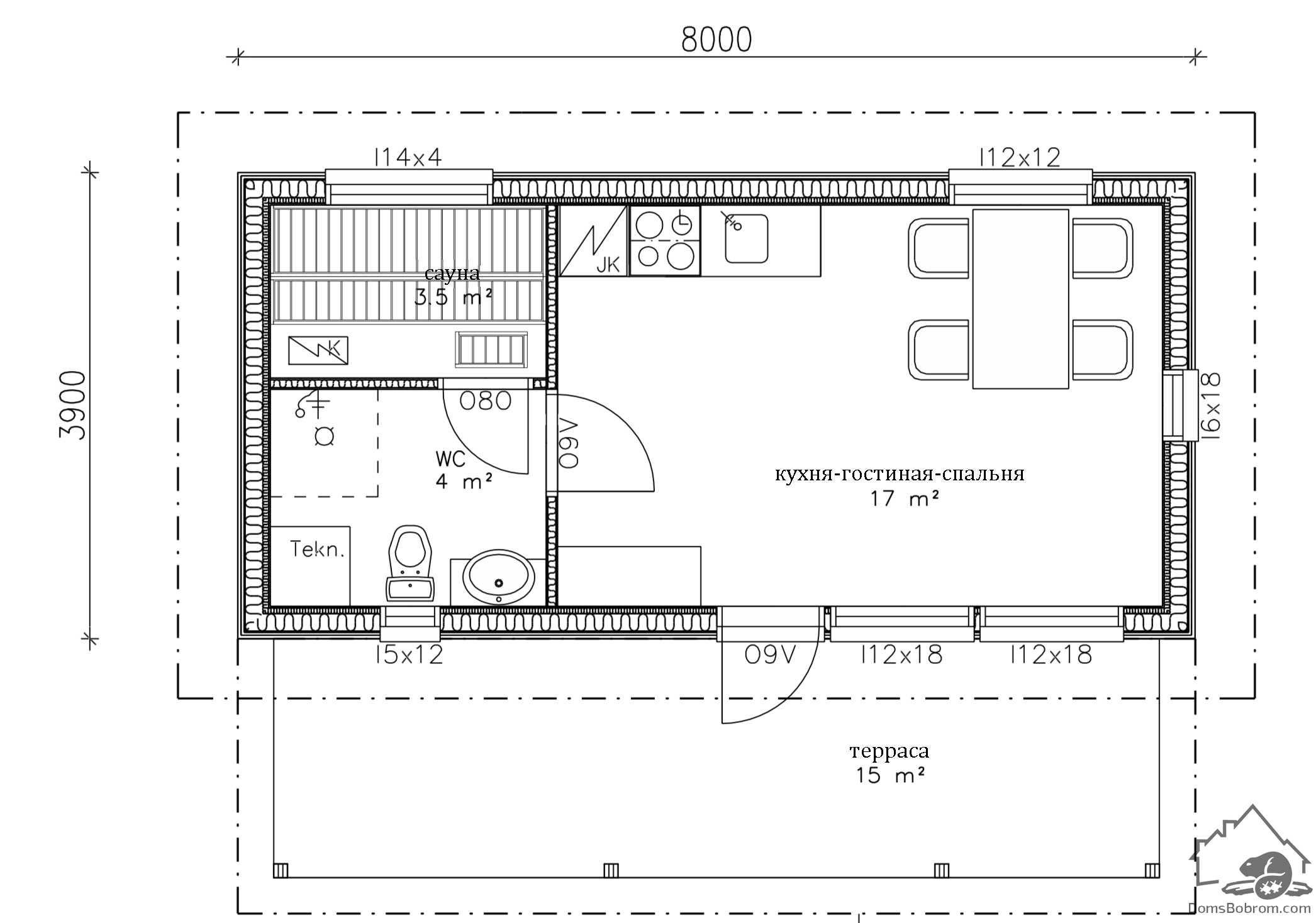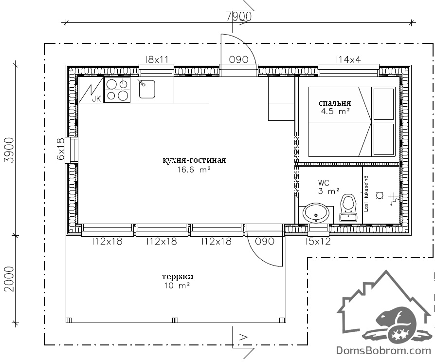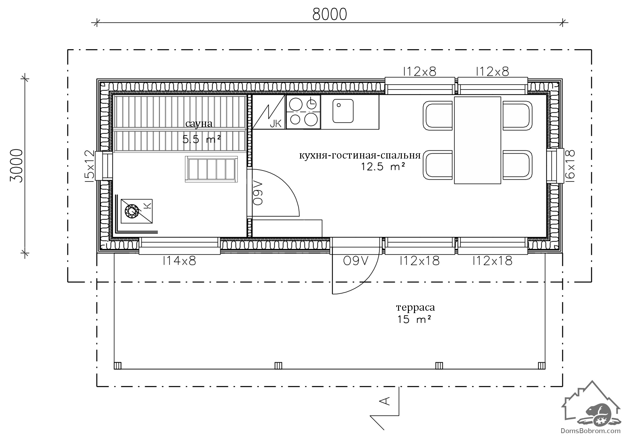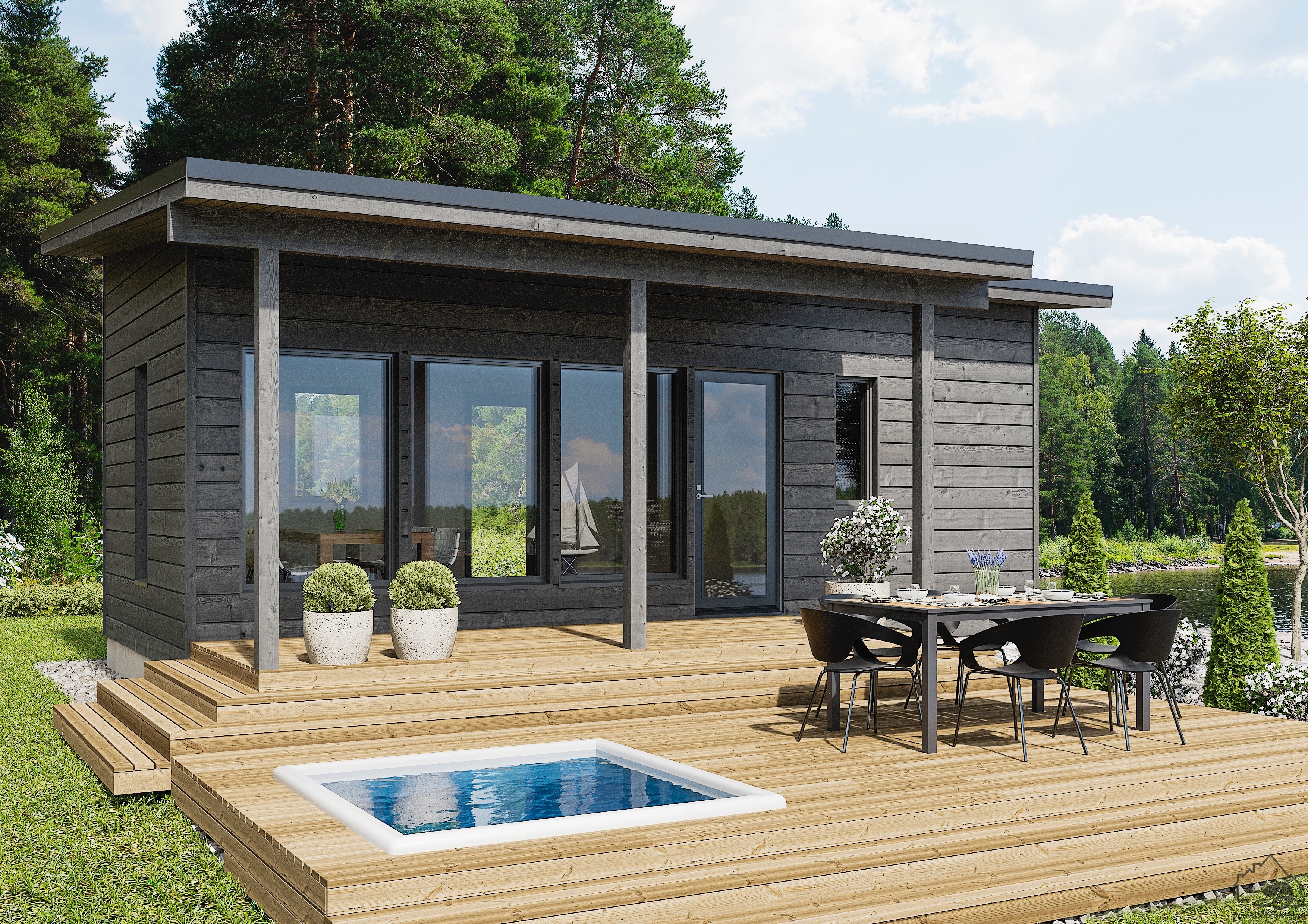 Гостевой дом Aina может иметь разные планировки: с сауной/баней или без, с санузлом или без, с отдельной спальней или с одним общим жилым пространством.
