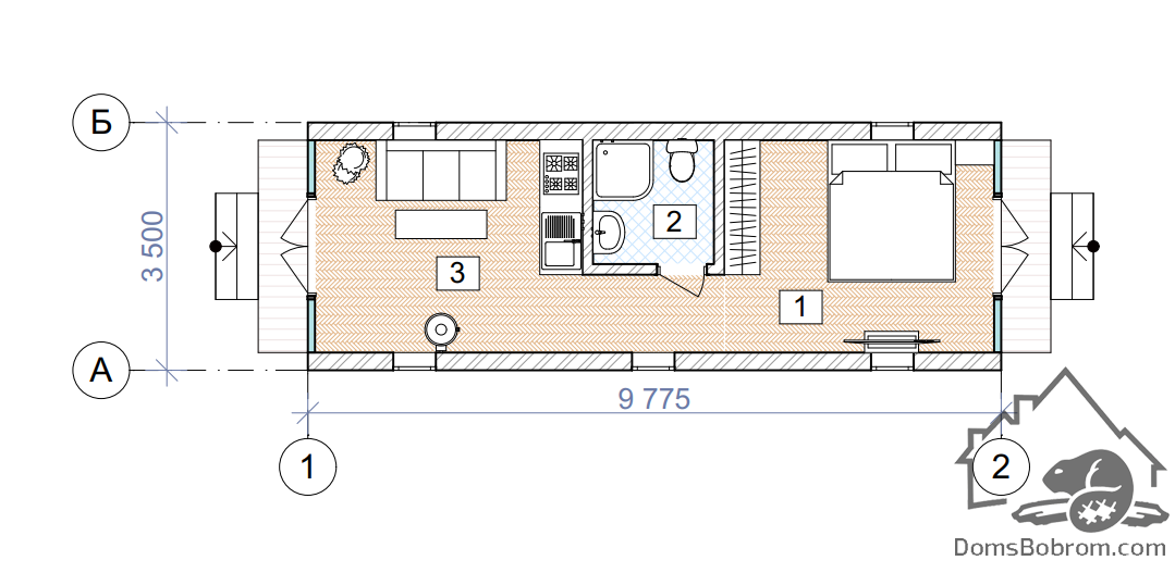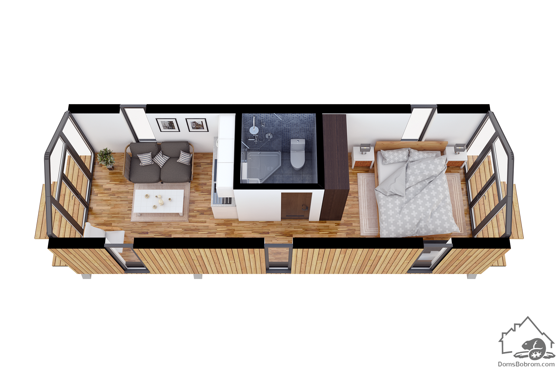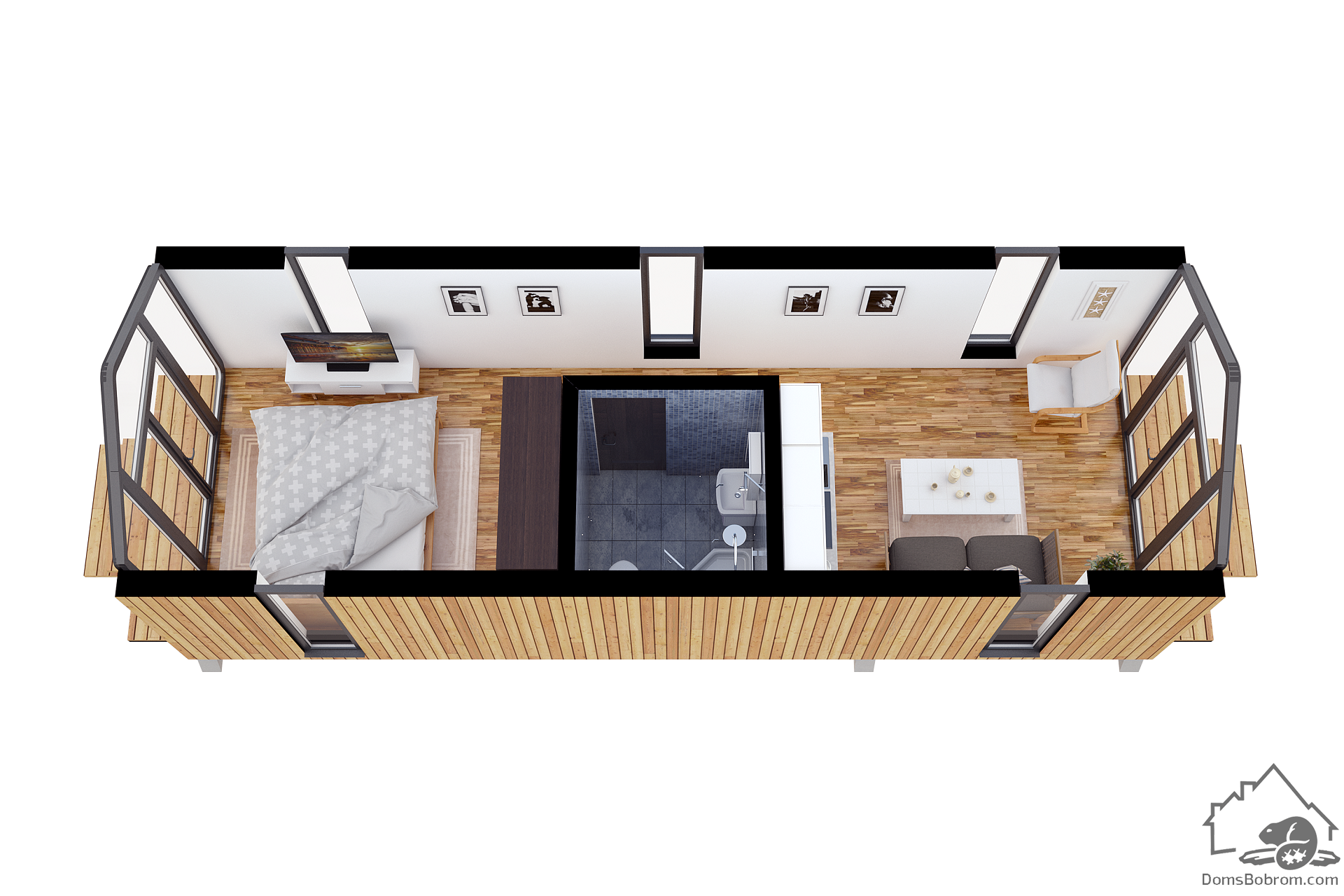 Барнхаус Camera идеально подходит для двоих человек - для молодой семьи или пожилой пары. Можно утеплить и сделать домом на ПМЖ. Большая площадь остекления означает, что в доме буде светло.