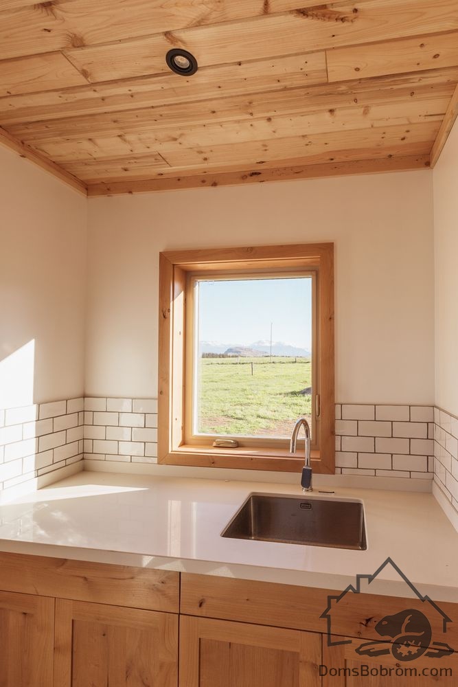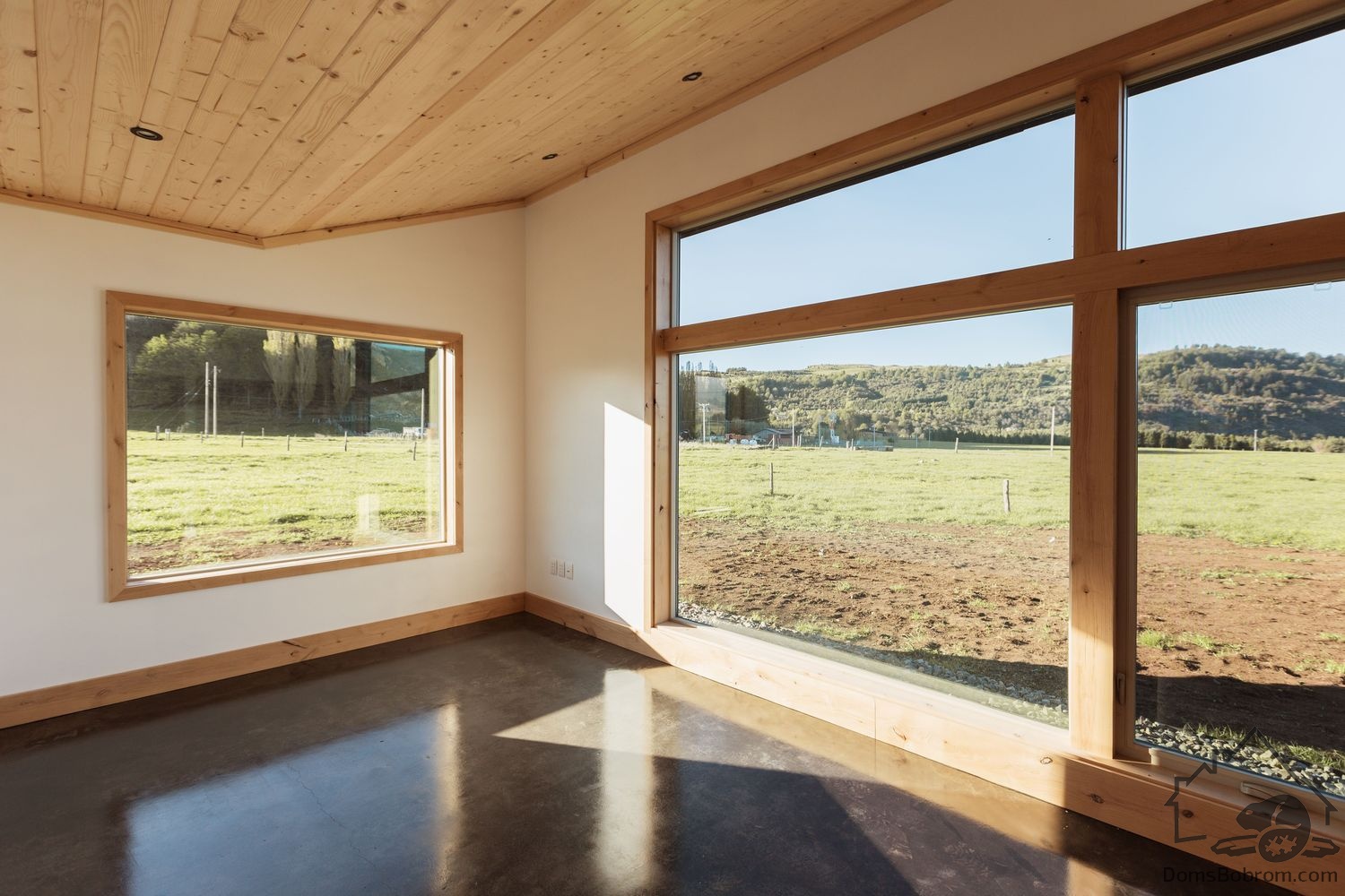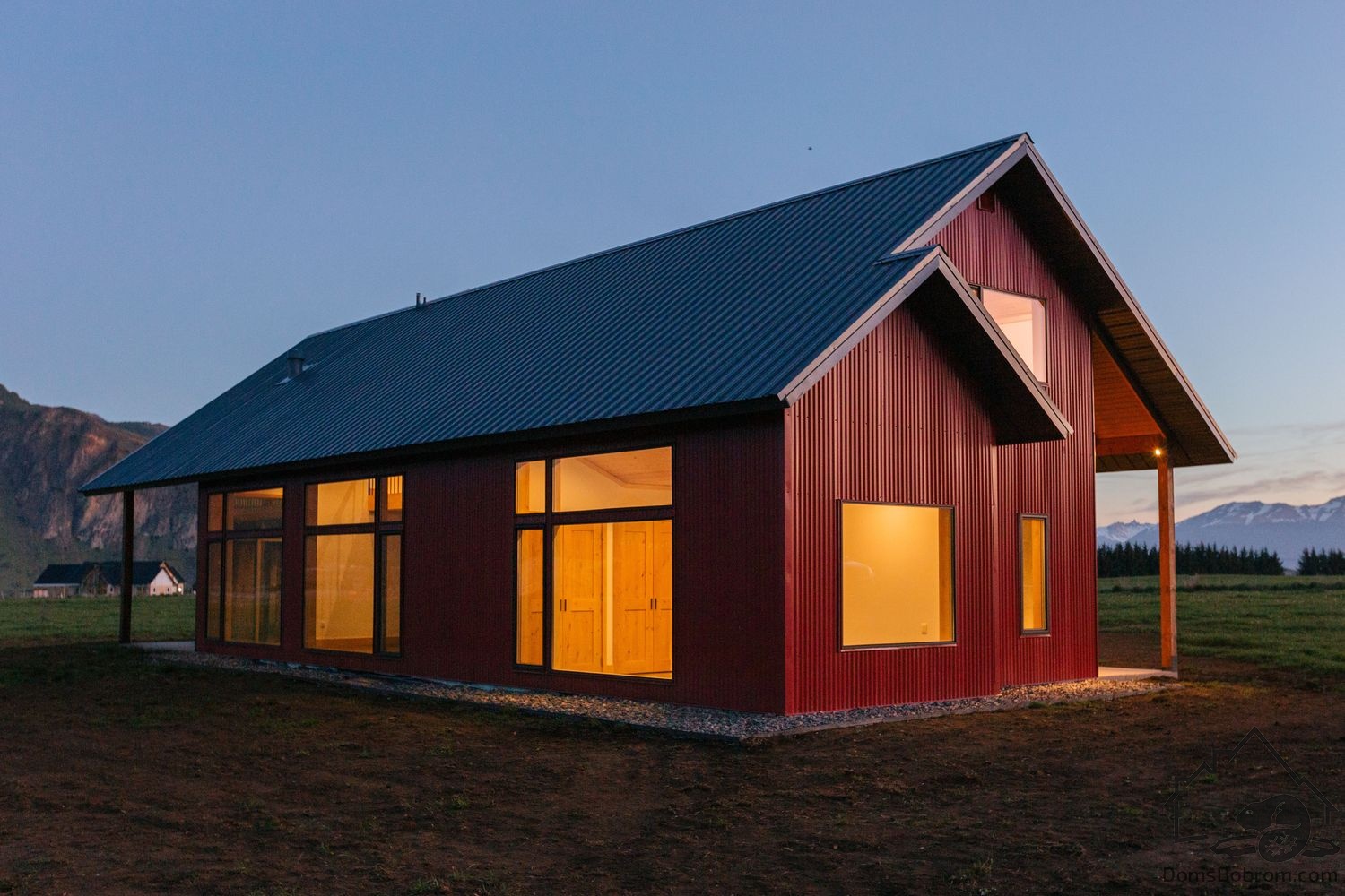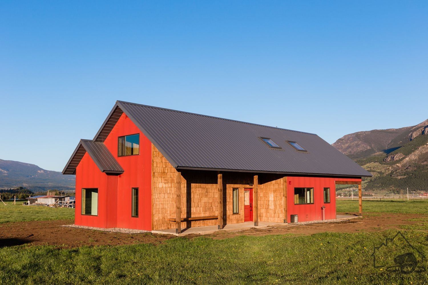 Красный силуэт барнхауса Chile создает впечатление тепла, когда освещается заходящим солнцем. Фасад отделан металлопрофилем и сайдингом щепа, которые долговечны и не требуют особого ухода. С одной стороны дома можно полюбоваться закатом, а с другой стороны, защищенной от ветра, удобно собираться компанией вокруг костра и барбекю. Внутри пространство спланировано так, что почти все помещения выходят в комнату с большими окнами.