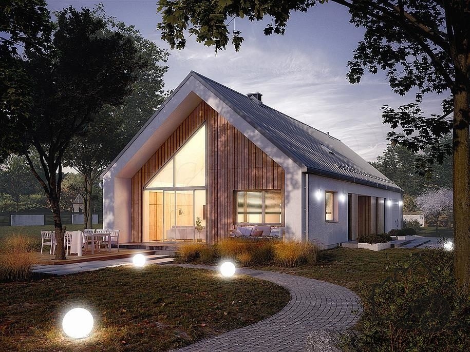 Барнхаус Hella - это современный одноэтажный дом для семьи из 4-5 человек. Дневная зона состоит из холла с высоким потолком и кухни, примыкающей к столовой. Благодаря большим окнам и открытому потолку в гостиной, интерьер намного просторнее.