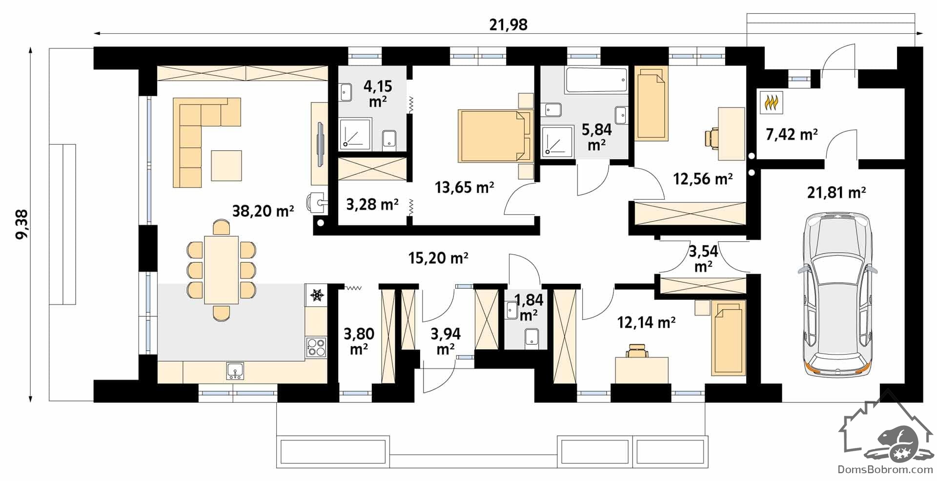 Размер дома 9,38 x 21.98 m