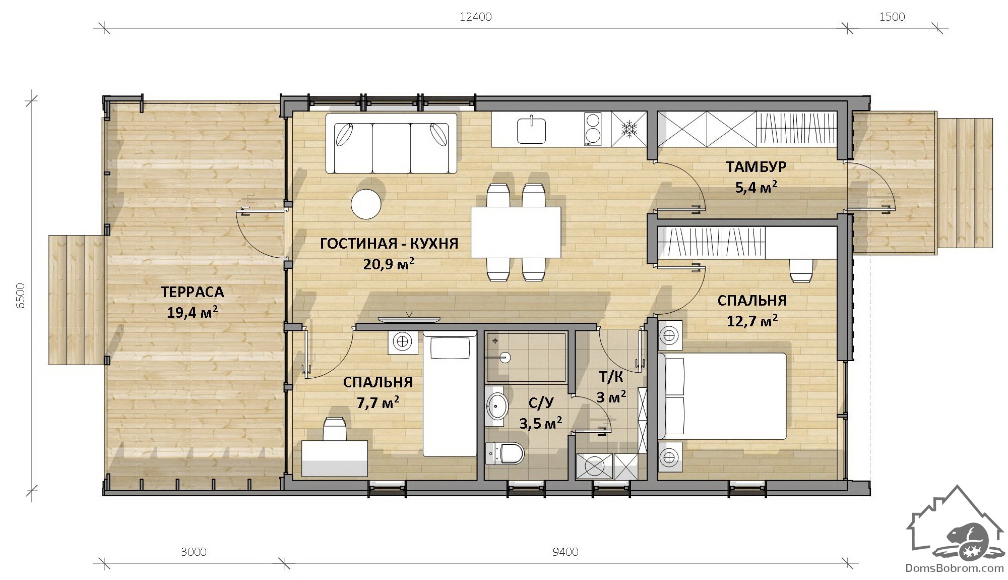 - Каркас:Каркас дома из сухой строганой доски камерной сушки: силовой каркас, хедеры, ригеля, обвязки каркаса, стропильная система, перекрытия, перегородки.