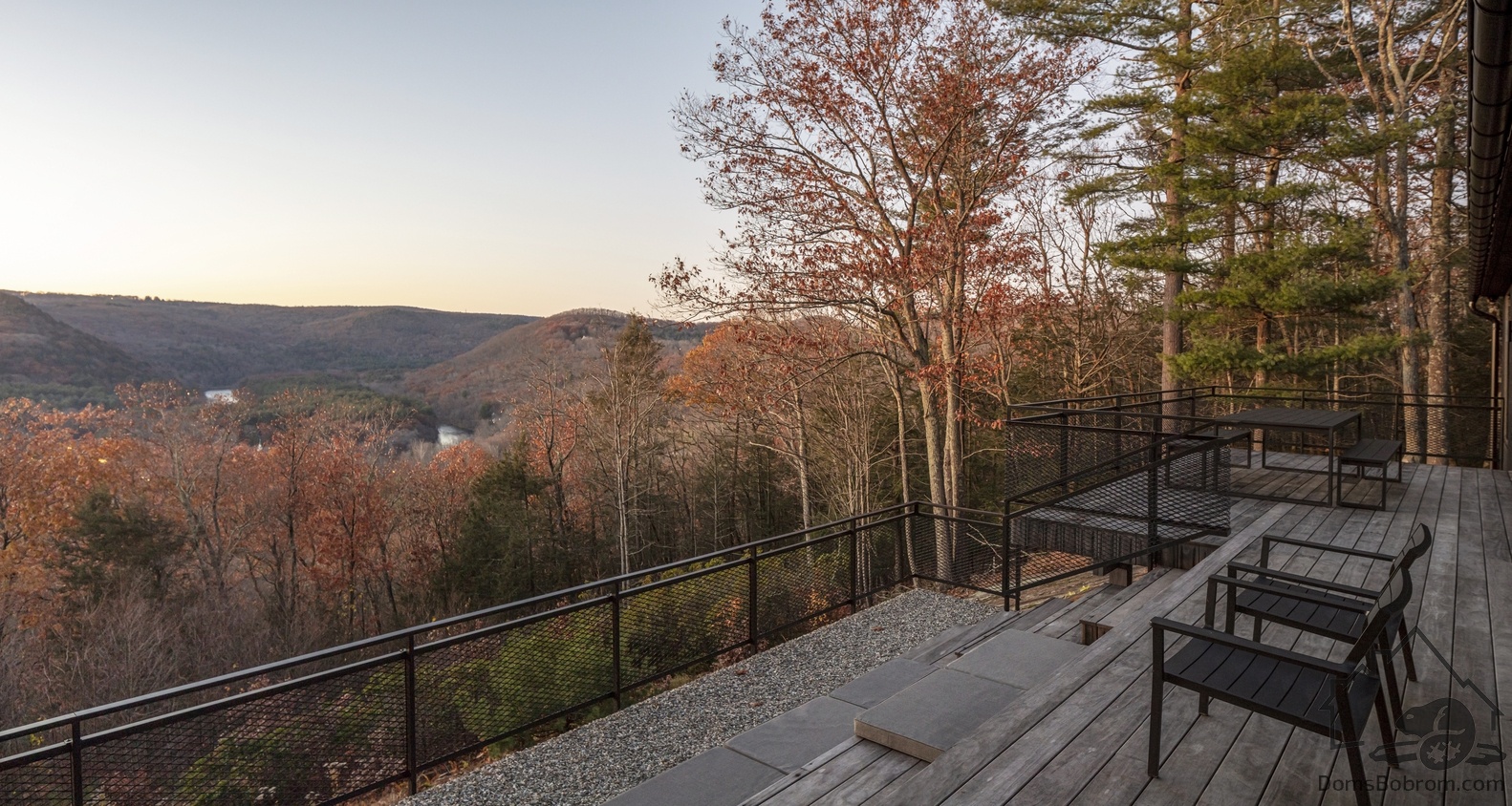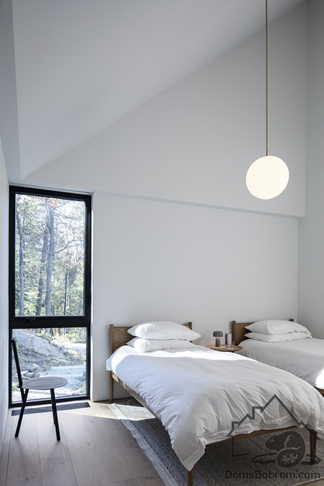 Большие камни на участке стали частью дома Ledge. Гостиная, столовая и кухня образуют основное пространство в виде большого прохода через дом. Эти проходы были стратегически расположены так, чтобы можно было насладиться видами из окон. Внешняя отделка дома практичная, а внутренняя легкая и воздушная. Одна спальня находится в одном конце дома, две другие гостевые спальни находятся на противоположных концах. Хозяева дома также могут объединяться и общаться в общем открытом пространстве на свежем воздухе, которое находится на лесной террасе, через перила.