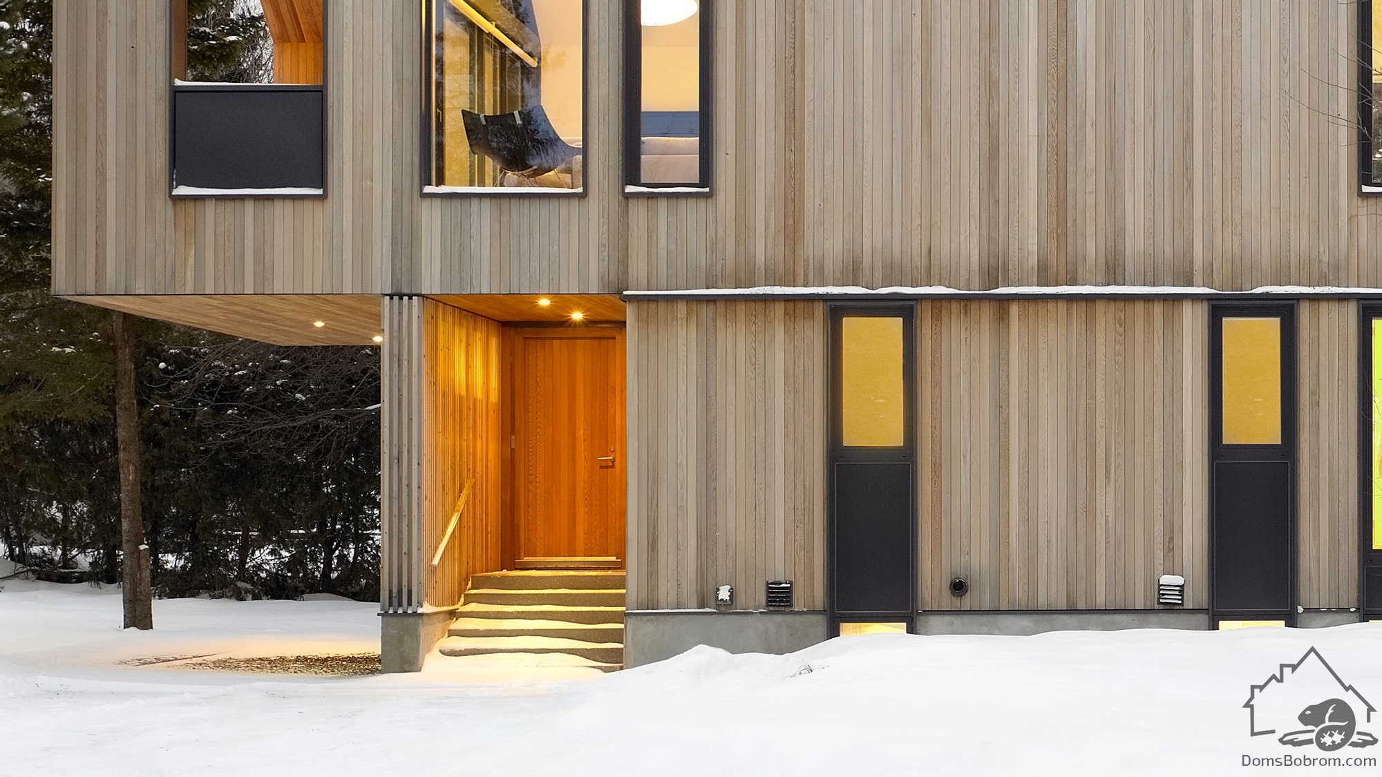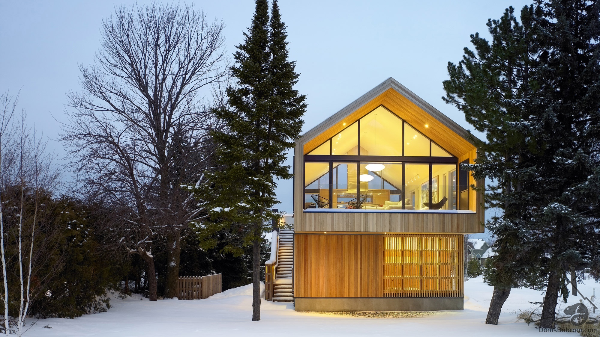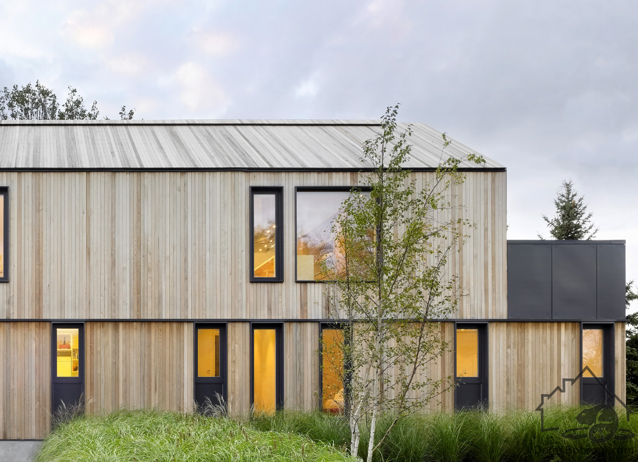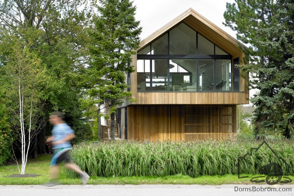 Дом Maison Glissade спроектирован архитекторами AKB (Ателье Kastelic Buffey), это дом для семьи из пяти человек. Maison Glissade представляет собой элегантное двухэтажное здание, в котором второй этаж несколько выступает над первым. Крыша сделана двускатной.