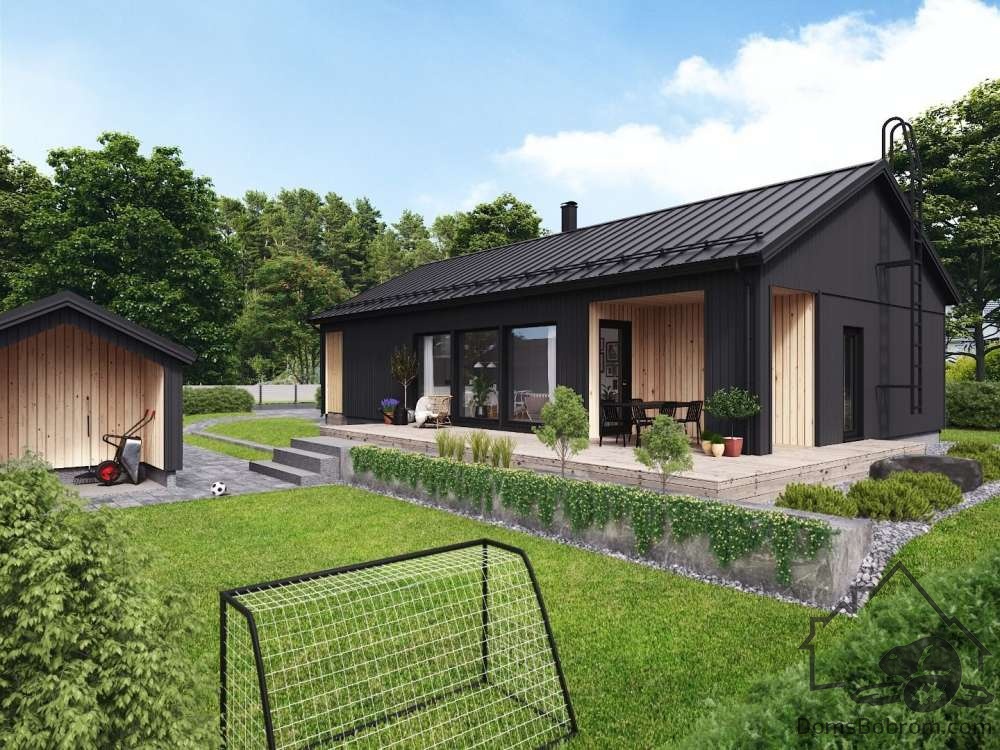 - Простая форма и конструкция дома, двускатная крыша, маленькая площадь позволят значительно сэкономить денежные средства во время строительства и эксплуатации (один из атрибутов энергоэффективного дома).