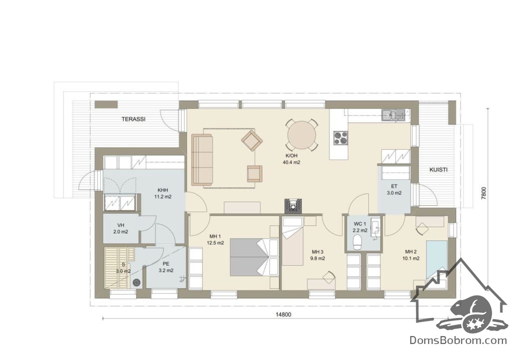 - Расположение всех помещений на одном уровне исключает необходимость перехода с этажа на этаж.
