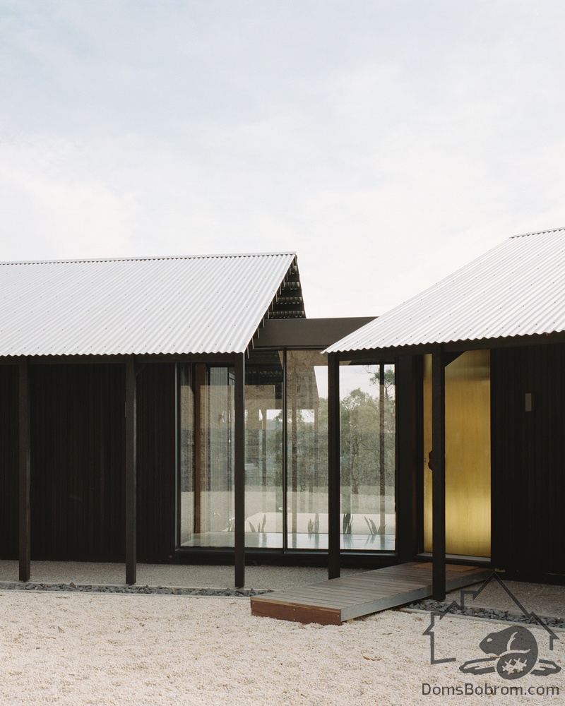 Дом Rory состоит из 2х корпусов, соединенных стеклянным тамбуром и расположенных под углом друг к другу. Таким образом, личное и общественное пространство четко разграничено, что позволяет наслаждаться домом хозяевам вместе со своей семьей и друзьями. В то же время планировка максимально приближена к природе. В восточном корпусе расположены спальни и ванные комнаты с окнами в крыше, а в западном корпусе - общественные помещения. Оба корпуса имеют классический сарайный силуэт с деревянной облицовкой и двускатными крышами. Окна дают отличный вид на окружающую природу. Веранды смягчают переход между внутренним пространством и природой.