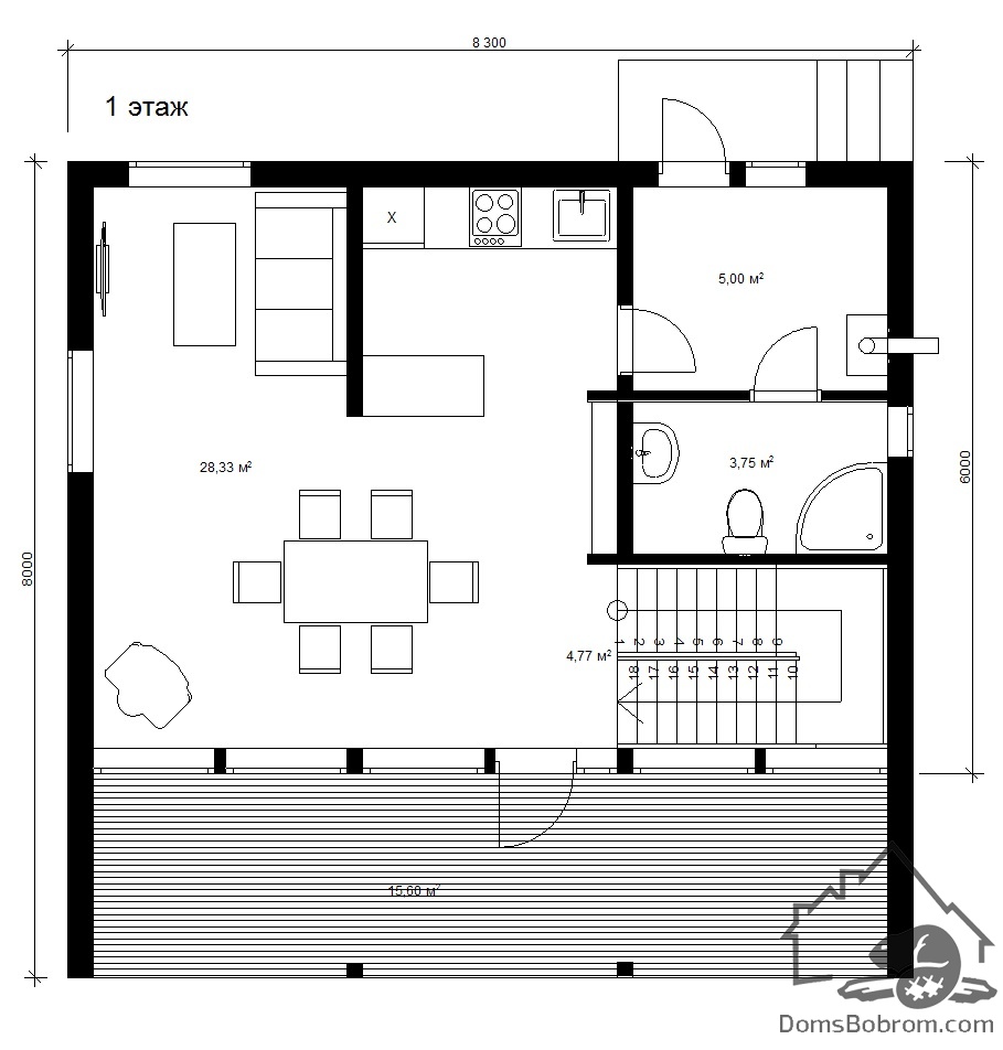 Дом Rubus, несмотря на свои небольшие размеры, действительно функциональный. Его можно разместить на небольшом участке, а дополнительным плюсом станет терраса.
