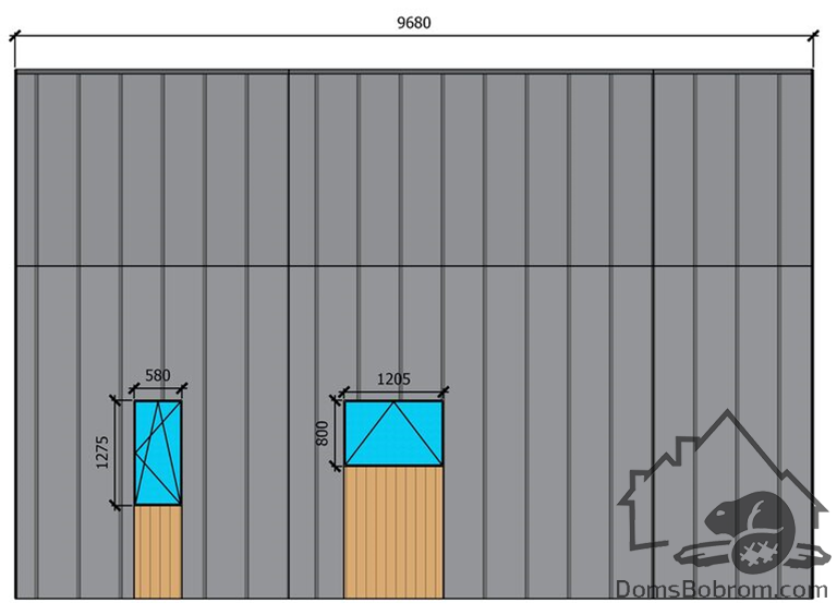 - Внешняя отделка:Доска / Цементно-стружечная плита (ЦСП), оконные отливы, наличники окон и дверей.