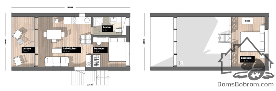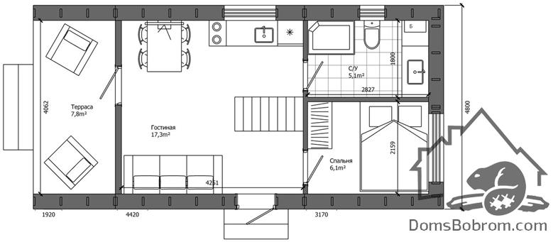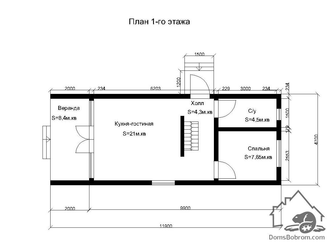 Размер дома 11.9 м x 4.7м
