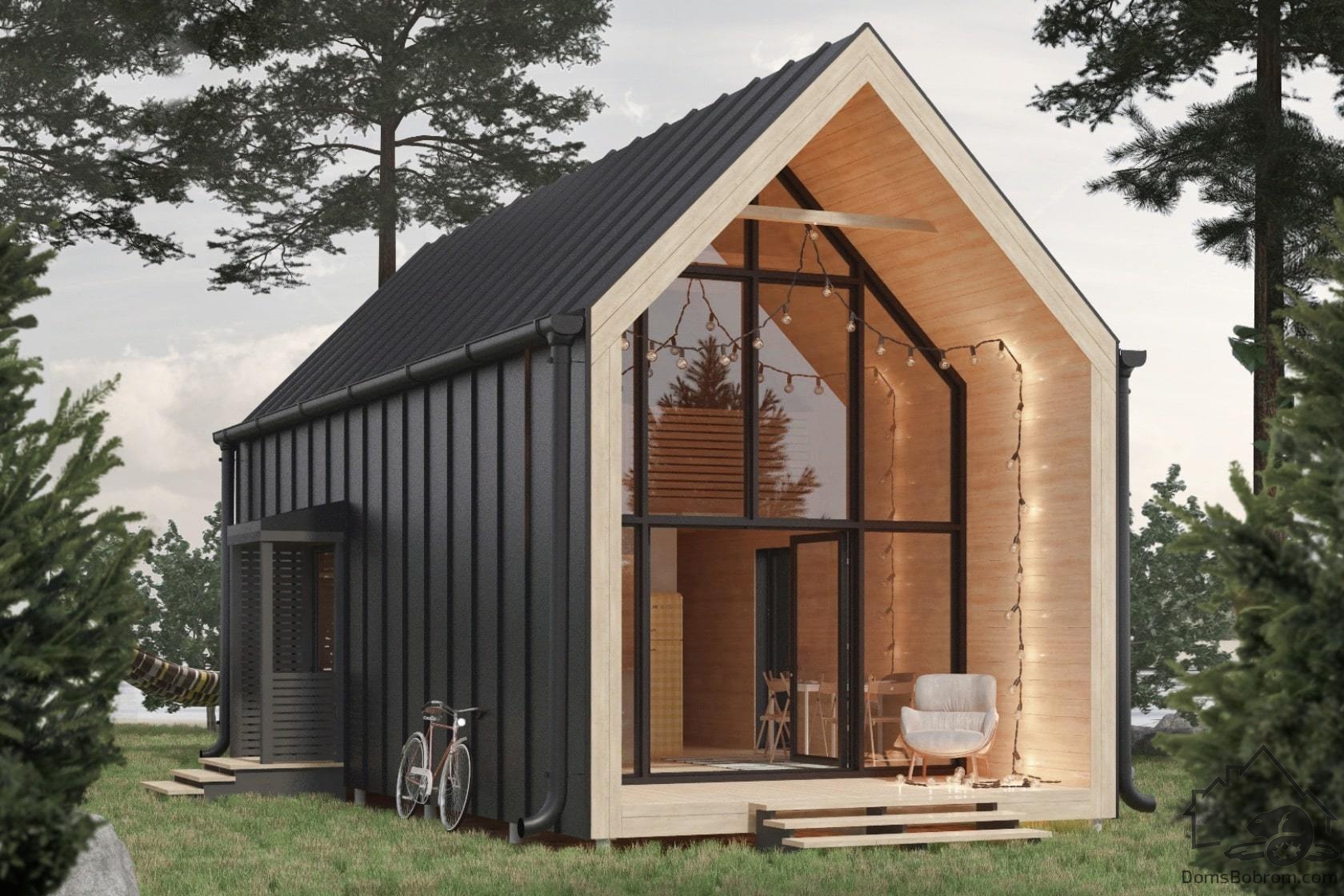 Барнхаус Vivika — это суперсовременный двухэтажный дом, который точно понравится творческим и современным людям. Дом не останется незамеченным и точно выделится среди однотипных построек соседей. В доме все продумано до мелочей: удобная, хорошо продуманная планировка включает в себя: прихожую с местом для гардероба, ванную комнату, уютную спальню, функциональную кухню-гостиную, а также просторную комнату на втором этаже, из которой открывается прекрасный вид через панорамные фасадные окна.