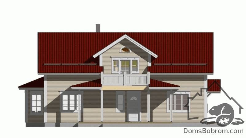 Дом Kartano с фасадом в американском кантри-стиле. Прекрасно впишется практически в любой загородный участок, хозяева которого любят стиль сельской жизни. Если украсить дом цветами, он станет еще уютнее и притягательнее.
