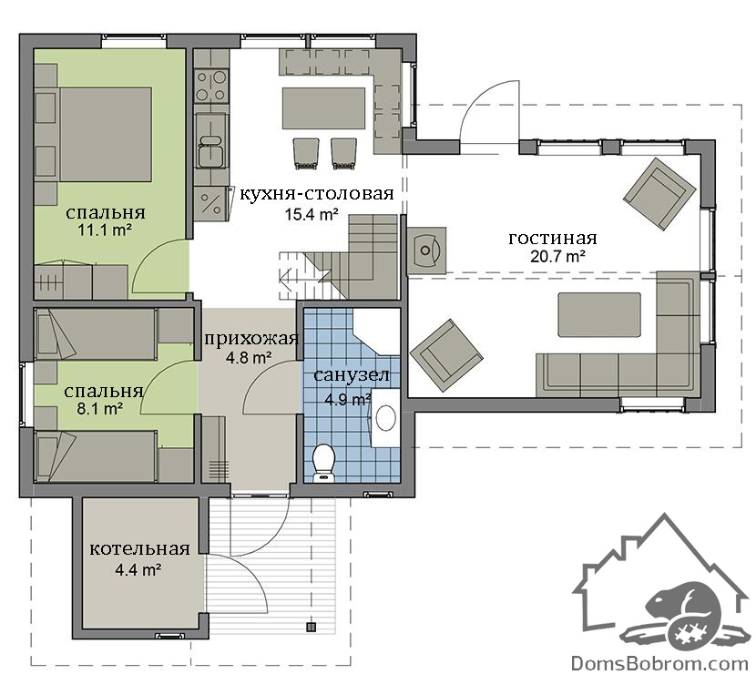 Дом Lyngen - это красивый домик, который отлично вписывается в местность как в лесу, так и в горах. Внутри дома царит теплая атмосфера. Проект предусматривает уютный крытый дворик. Мансардное помещение который можно обставить по желанию, а пристройку превратить в котельную/ еще одну комнату/ кладовку и т.п.