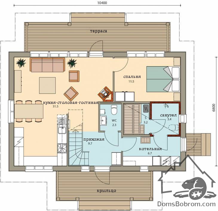 - терраса с выходом на задний двор, где есть прекрасная возможность установить мебель для отдыха;
