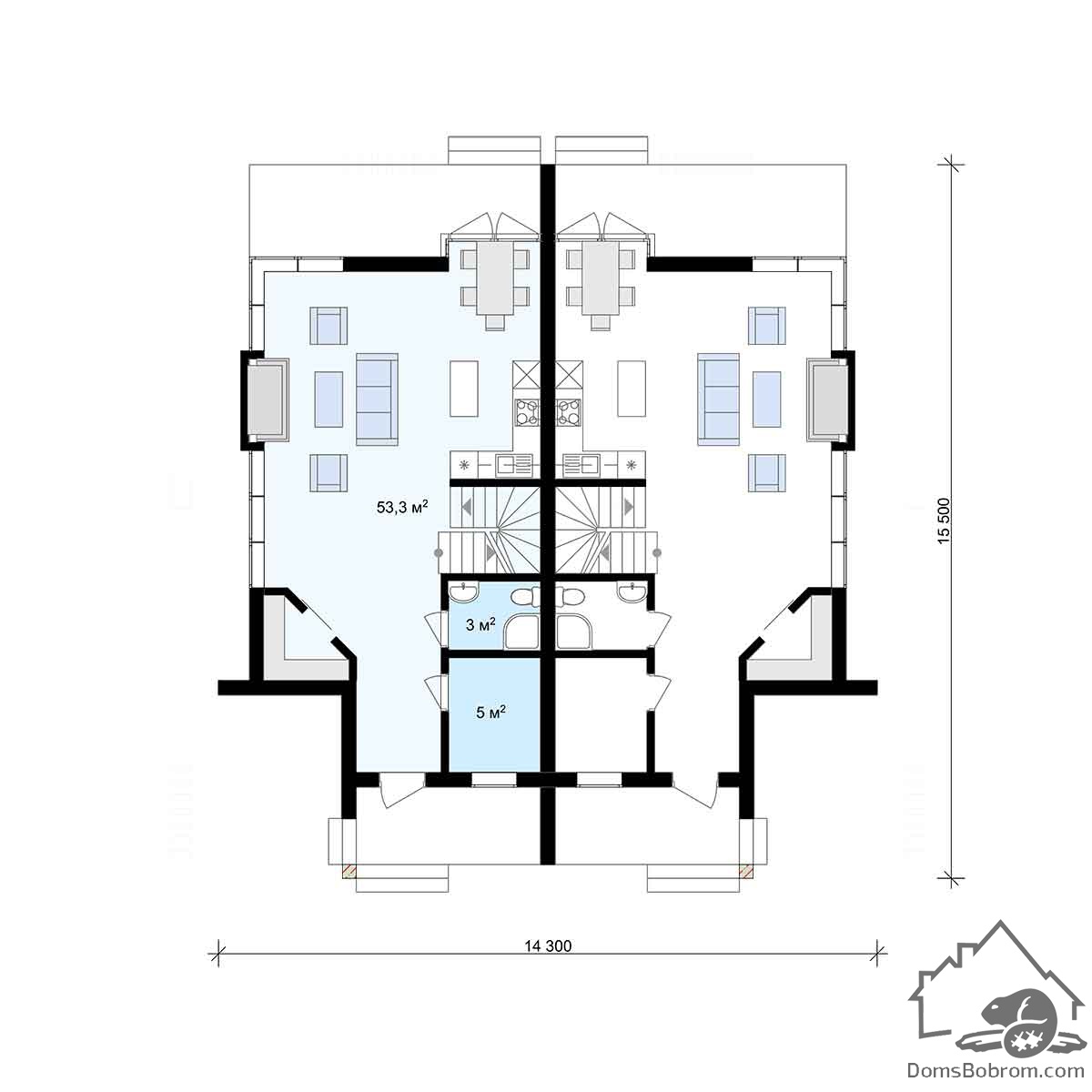 Размер дома 14,3 м х 15,5 м