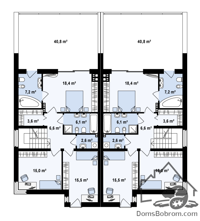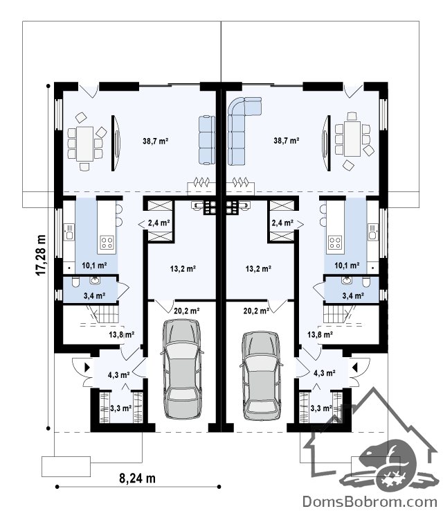 Стоимость строительства дома по проекту «Проект дуплекса Zb8» для дома постоянного проживания (ПМЖ)