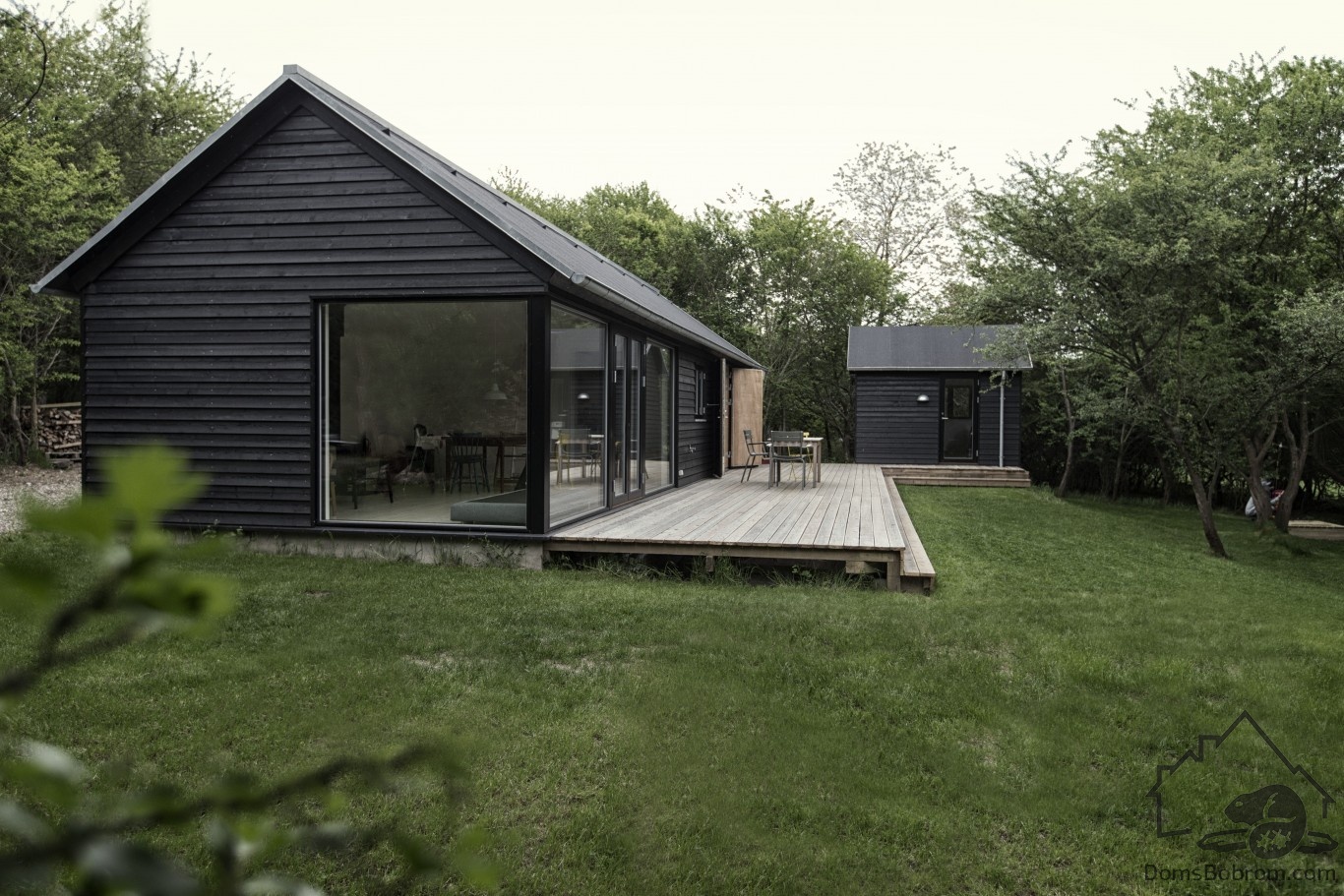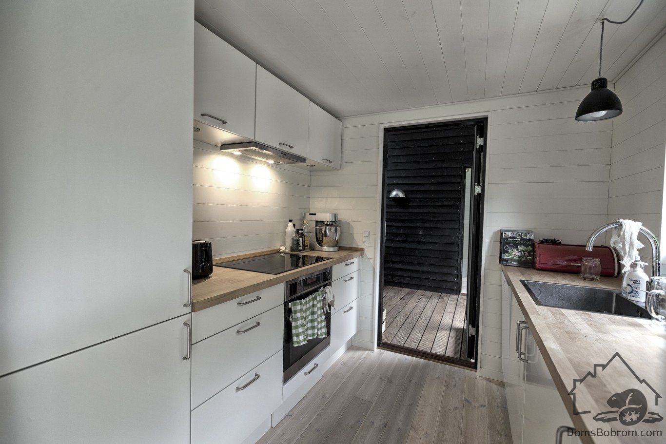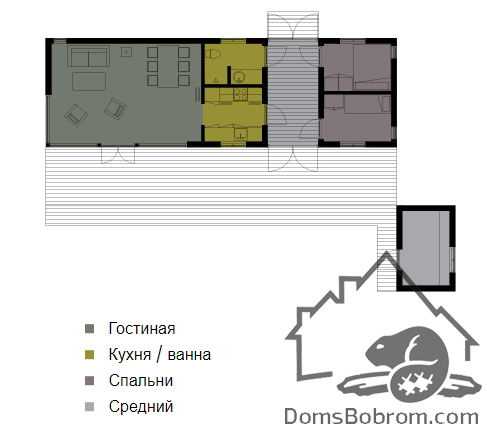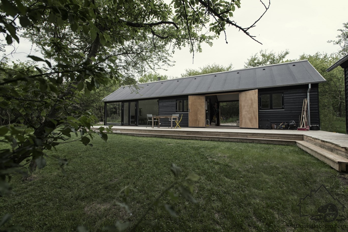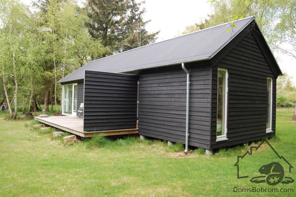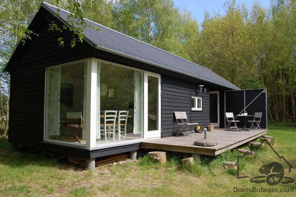 Гостевой дом Monhus можно построить в одном из 2х вариантов: 30 кв.м. - с одним общим пространством, санузлом, кухней и небольшой террасой, либо 51 кв.м. - с двумя корпусами, соединенными проходной террасой. Проходную террасу при необходимости можно будет закрыть с двух сторон большими дверцами.