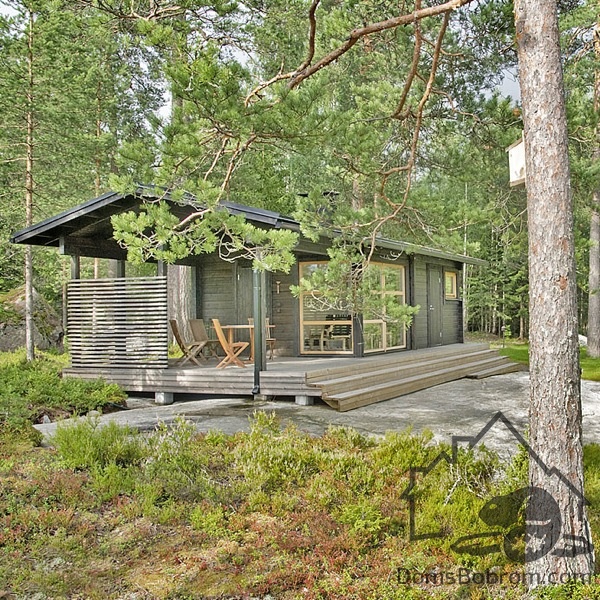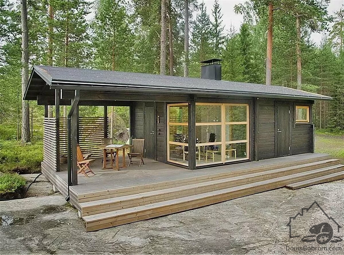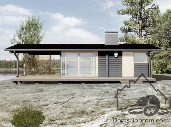 Просторная сауна, просторная гостиная и большая крытая терраса (18 кв.м.) придают гостевому домику Terva неповторимую атмосферу простора. несмотря на скромные размеры строения. Узкая форма позволяет легко разместить домик на большинстве участков.