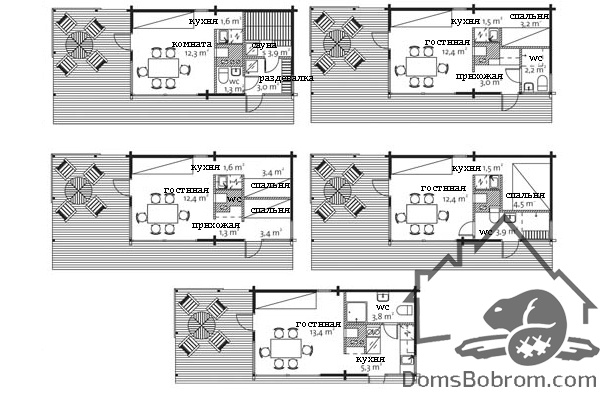 Гостевой дом Terva можно построить в нескольких вариантах: с сауной/баней или без, с одной нишей-спальней, или с 2мя - все зависит от назначения дома и ваших предпочтений.