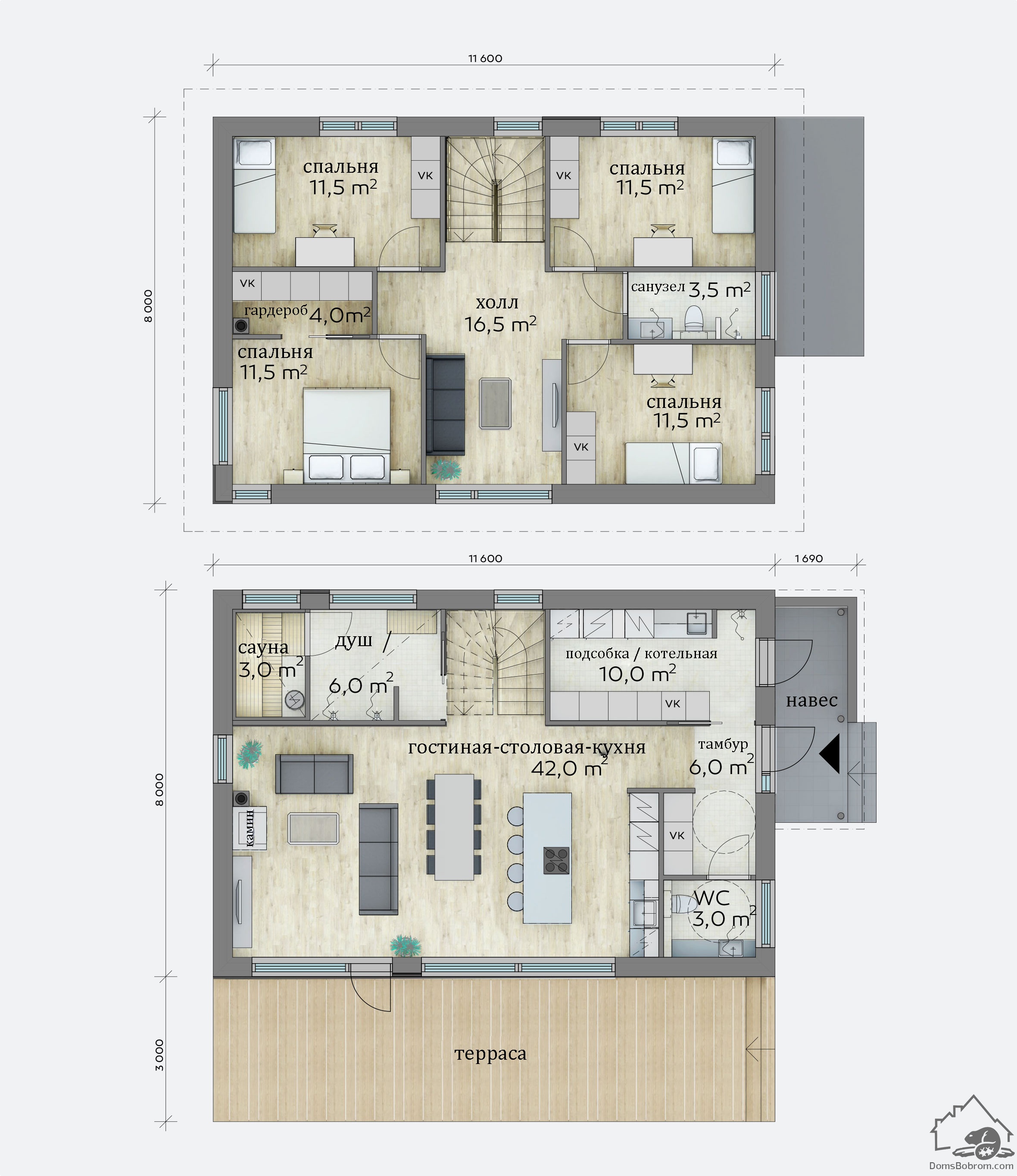 Размер дома 8 m x 11,6 m
