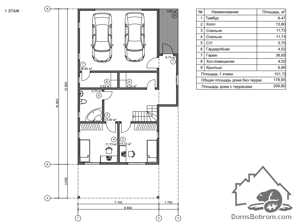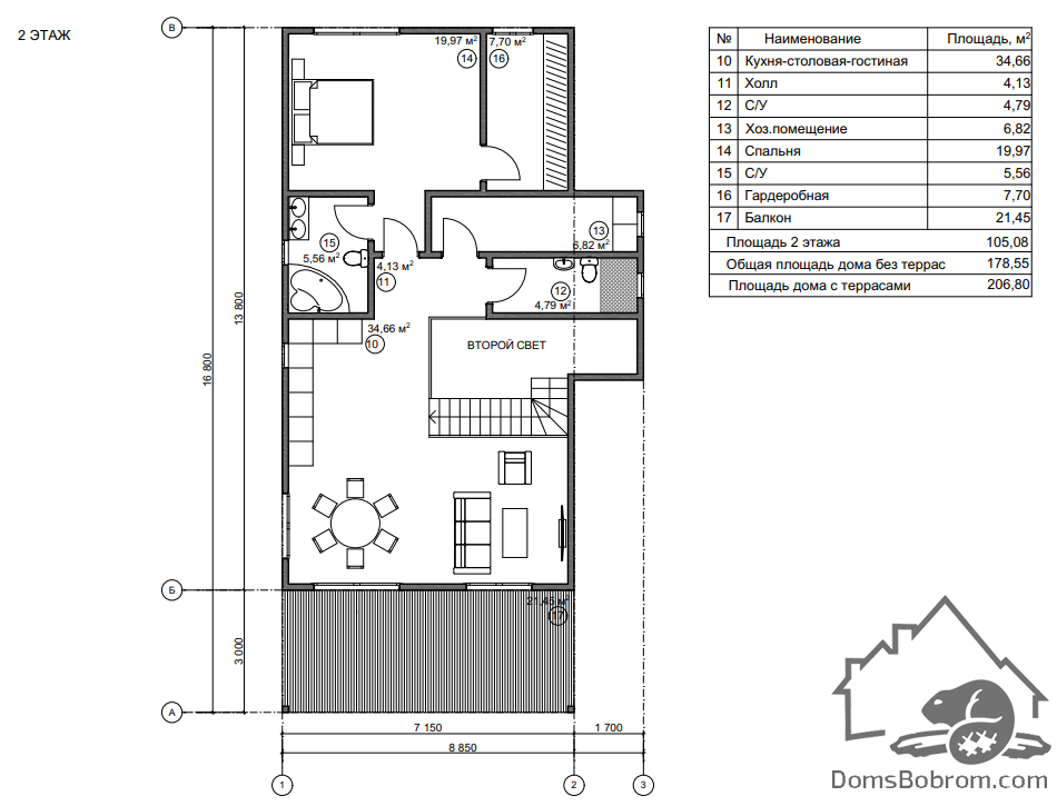 Размер дома 16,8 м х 8,8 м