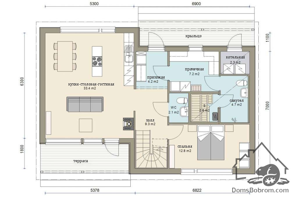 Размер дома 12 м х 8,1 м