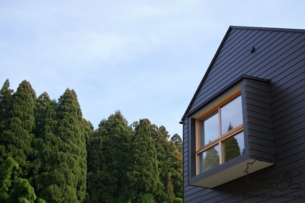 Дом спроектирован архитекторами бюро BAUM. Он простой, прямоугольный в плане с остроконечной крышей, минималистичный во всем.