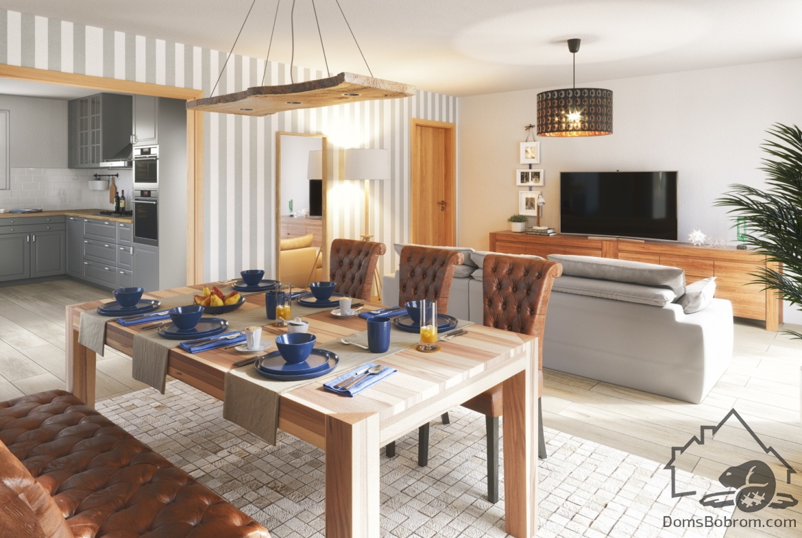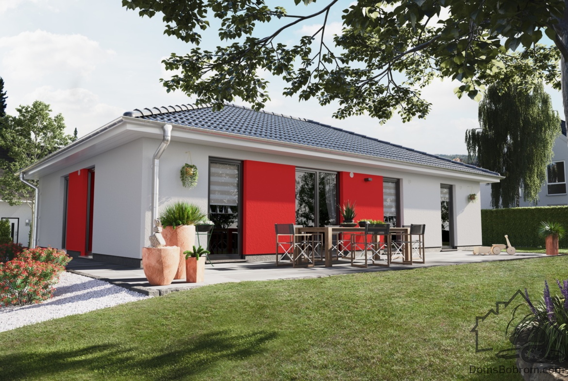 Дом Bungalow-110 идеально подходит для семьи с двумя детьми. Одноэтажный дом вмещает уютную гостиную и столовую, объединенные с кухней, просторную спальню и две детские комнаты. Большие окна создают светлую и дружелюбную домашнюю атмосферу в доме. Такой дом - это идеальное место для людей, которые ценят взаимную близость, и в то же время свое индивидуальное пространство. Красивая лесная крыша придает Bungalow-110 свой характер.