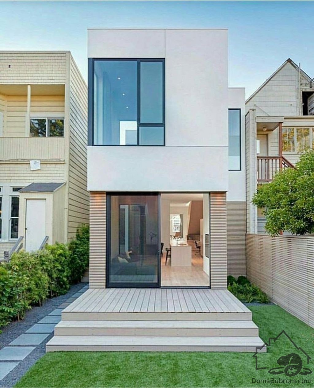 Дом Busik II специально спроектирован для узких участков, и подойдет как дом для участка размером всего 3-4 сотки. Оказывается, даже на земле шириной всего 11 метров можно поставить комфортный для проживания дом, при этом не нарушив минимальные отступы от границ.