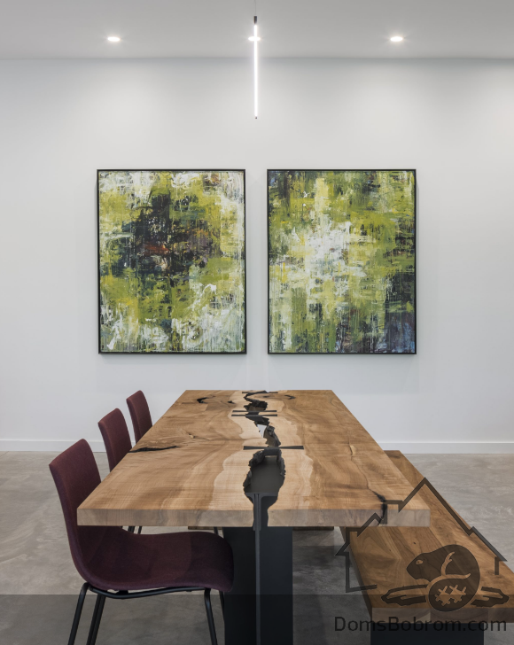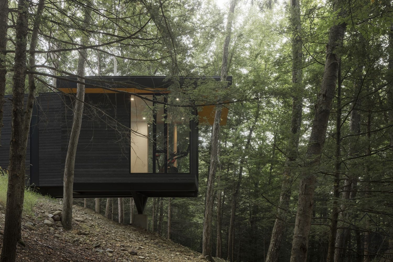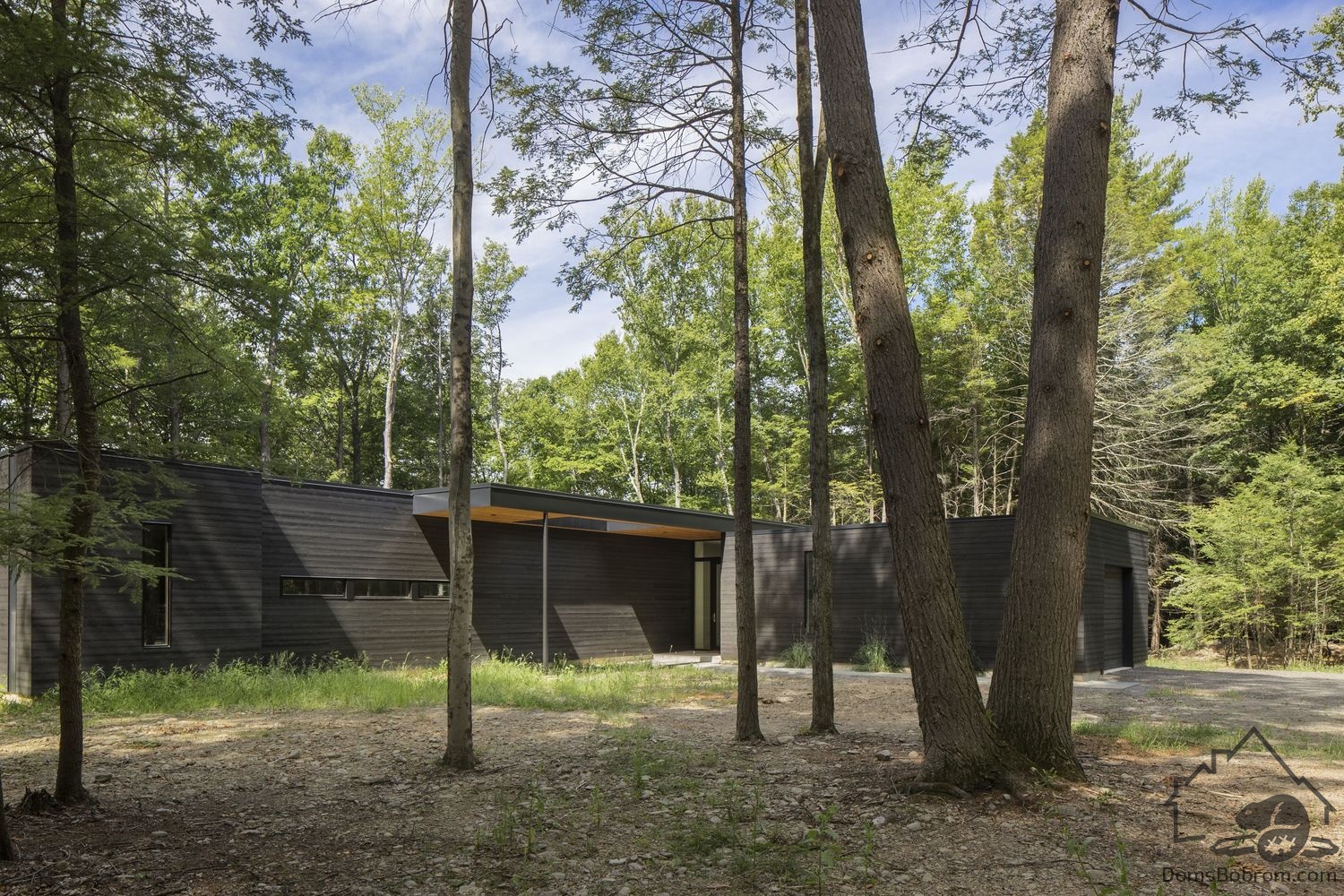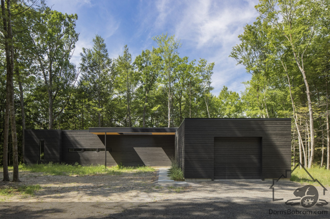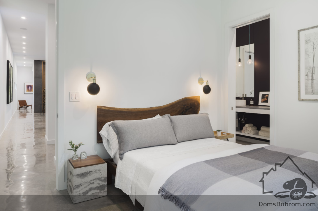 Из открытой гостиной большие панорамные окна открывают вид на лес. Одна из спален включает в себя просторную отдельно стоящую ванну - место, где можно расслабиться и отдохнуть. Ванна находится на видном месте рядом с угловым окном.