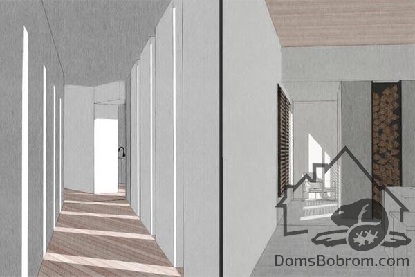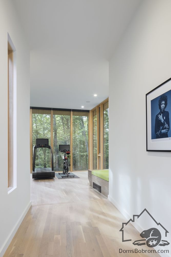 Комната-студия, которая может стать комнатой для творчества или спортзалом, дополнительной спальней, намеренно отделена от остального дома. Доступ к ней осуществляется через длинный крытый коридор.