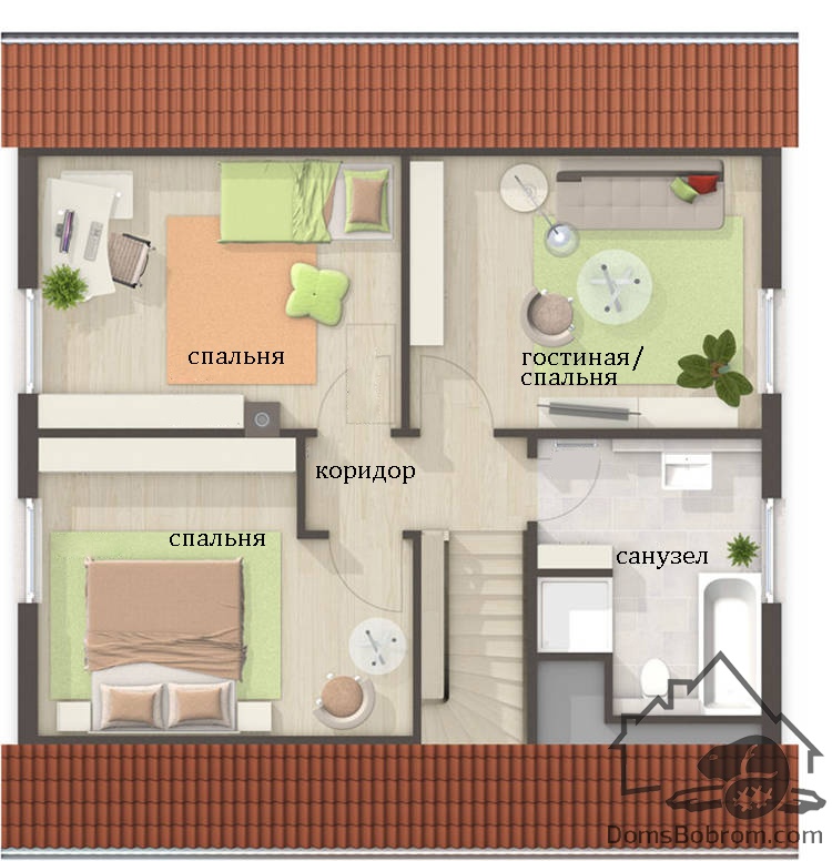 На втором этаже расположена приватная зона с 2-3мя спальнями.