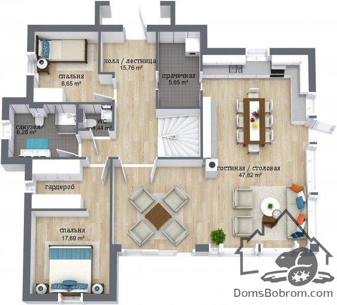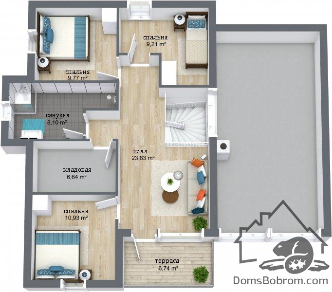 - Каркас:Каркас дома из сухой строганой доски камерной сушки: силовой каркас, хедеры, ригеля, обвязки каркаса, стропильная система, перекрытия, перегородки.