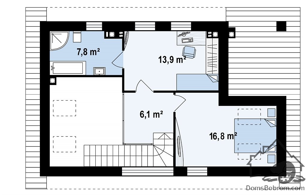 На втором этаже этого дома по проекту предусмотрены две спальни и ванная комната. Все помещения очень эргономичны, здесь нет лишних углов и ненужной площади.