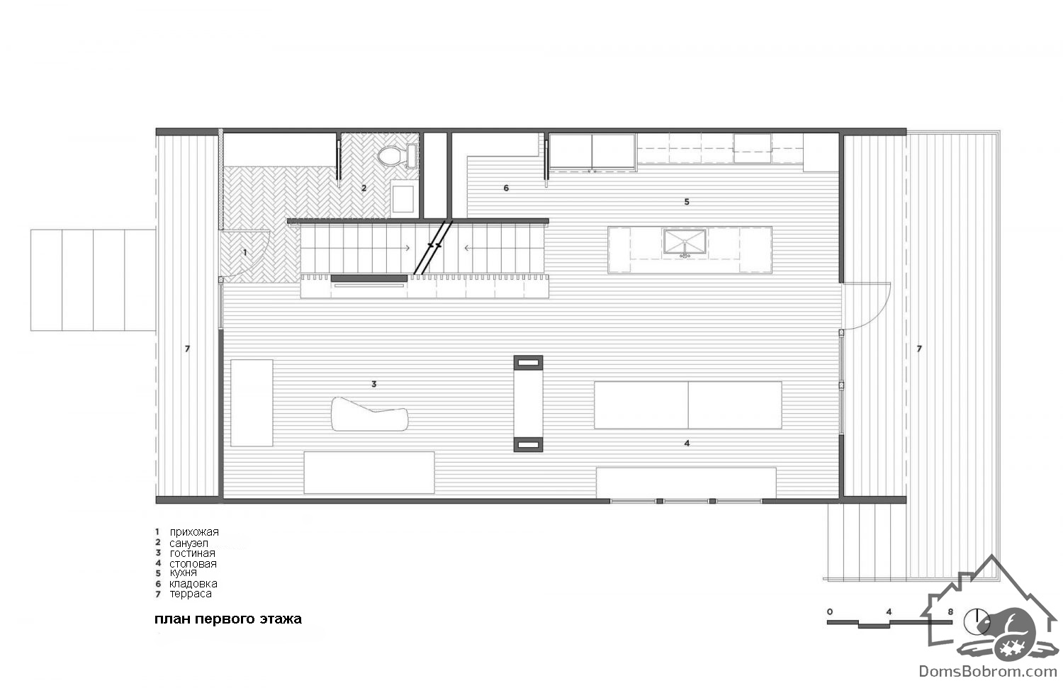 Dot - отличный проект энергоэффективного дома, благодаря грамотной ориентации окон и помещений внутри дома относительно солнца.