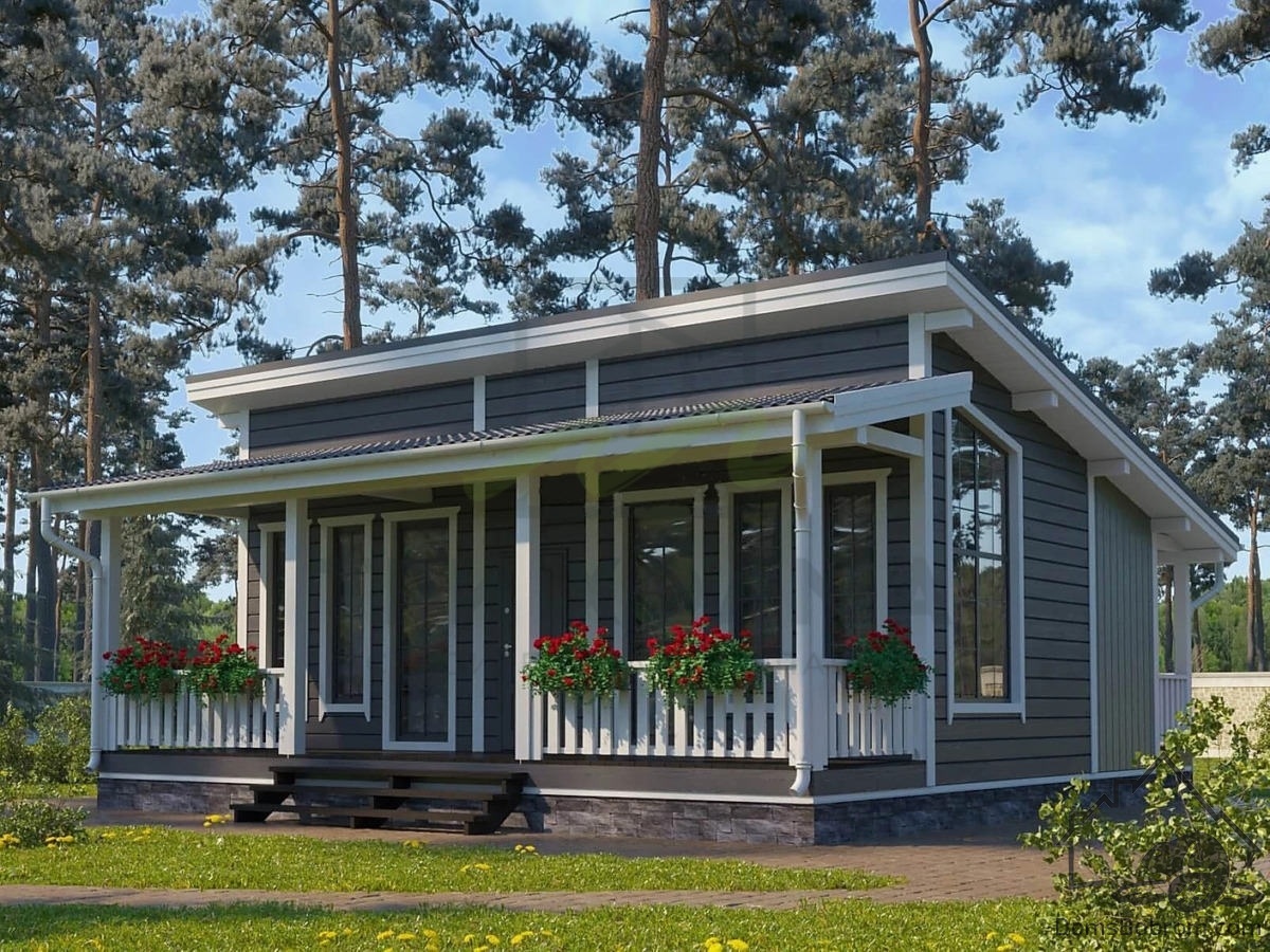 Дом Drimis - это небольшой, но очень функциональный дом, который отлично подойдет как для периодического отдыха, так и для круглогодичного проживания небольшой семьи. Каждое помещение отлично продумано в функциональном плане, и обладает достаточными параметрами для использования его по назначению. Крытая терраса защищает входную группу от осадков и позволяет наслаждаться свежим воздухом в любую погоду.