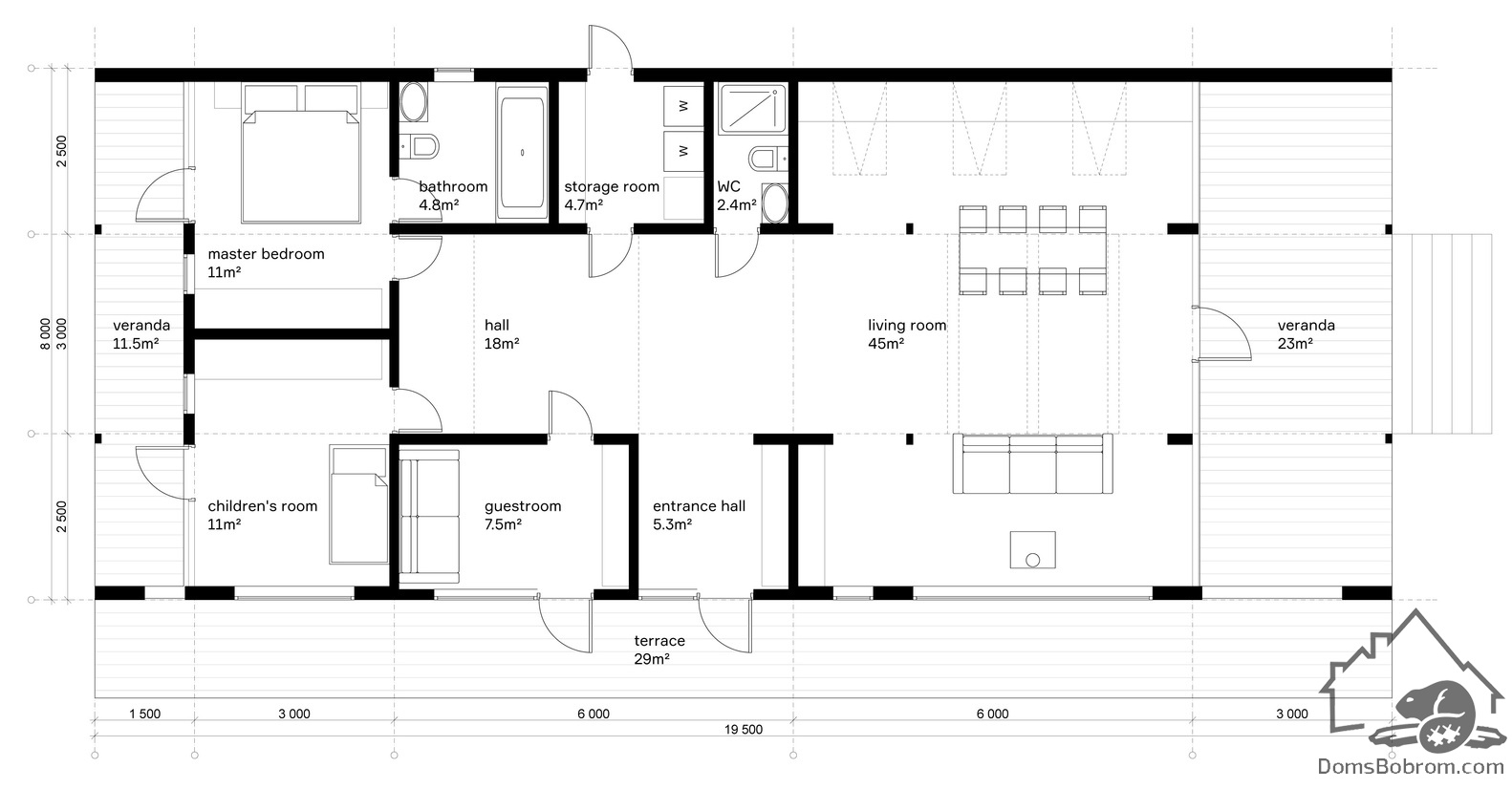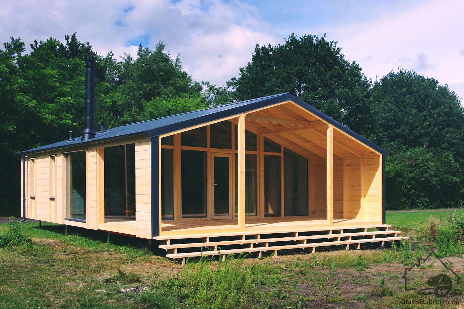 ДубльДом — это два одинаковых модуля, соединяющихся за счет скатной кровли. Доступен в вариантах от 60 м2 до 185м2.