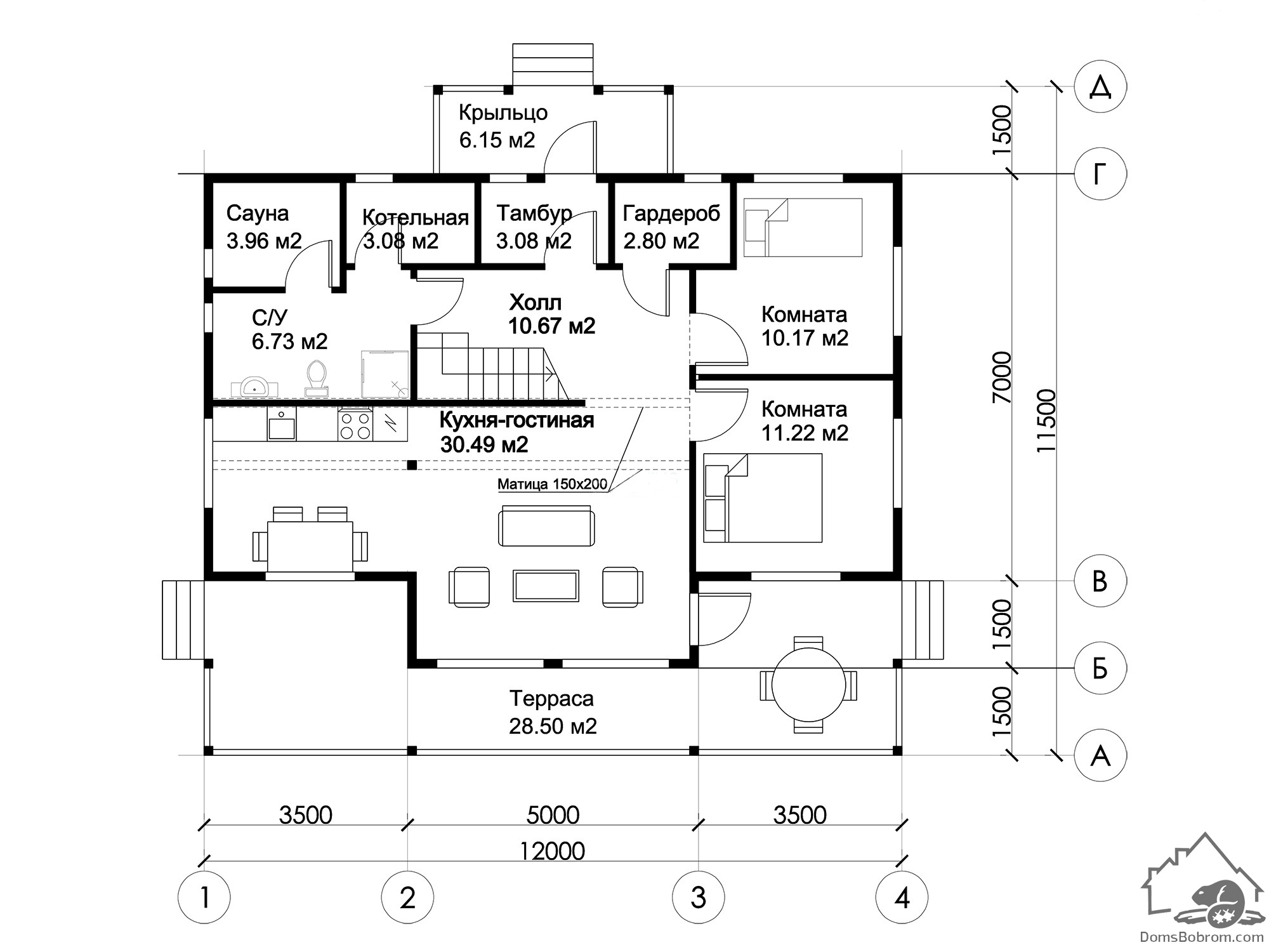 Размер дома 11,5 м х 12 м
