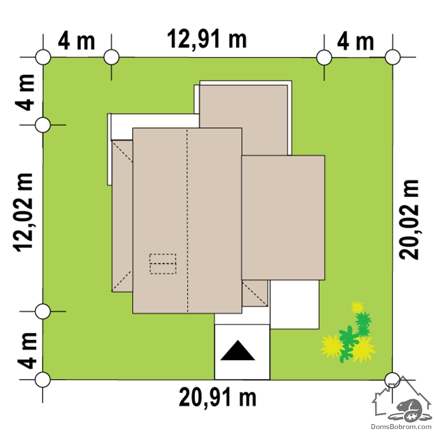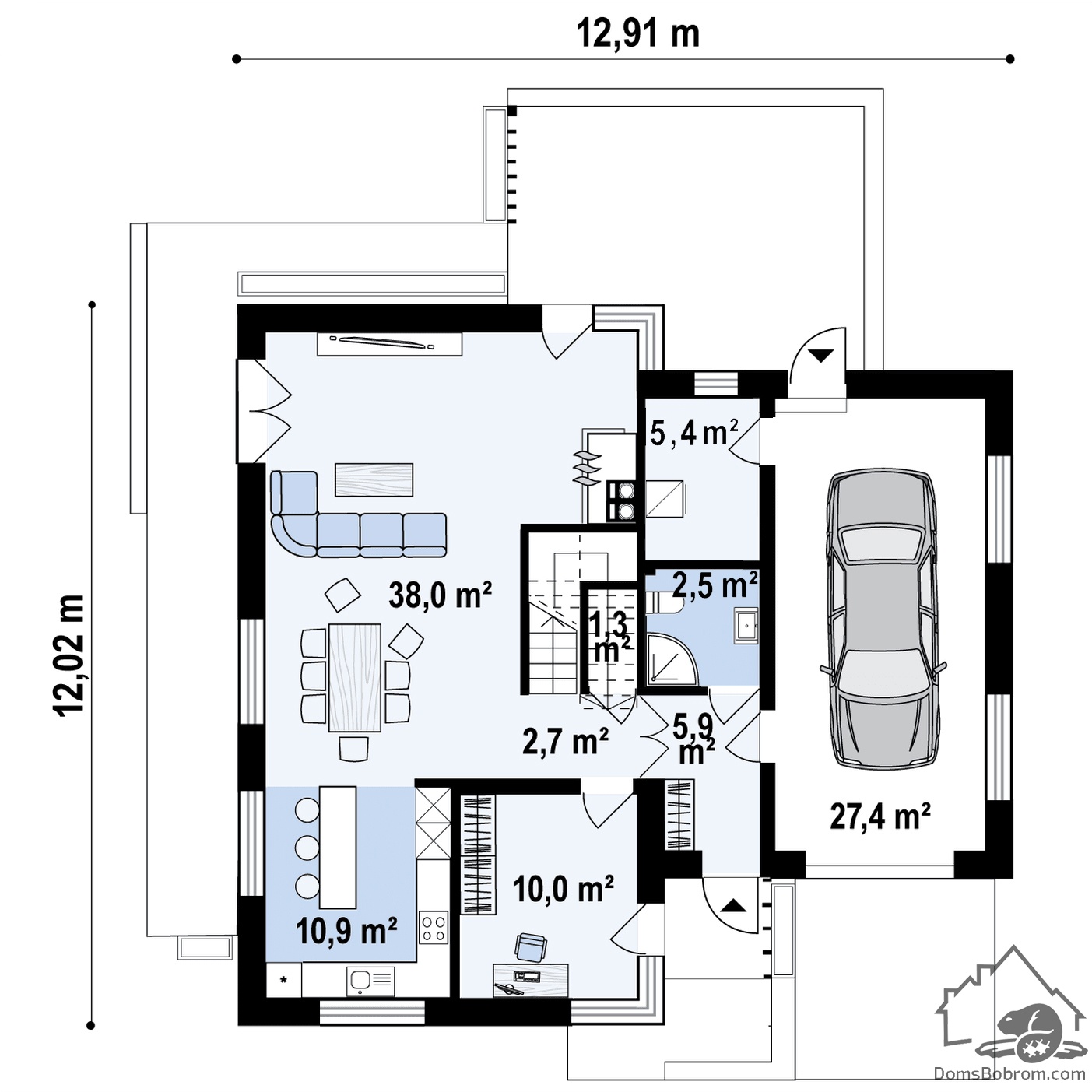 Размер дома 12 м х 12,9 м