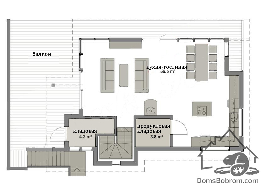 На цокольном этаже есть пространство, которое может быть сдано в аренду, или отделено для проживания родственников или обслуживающего персонала.