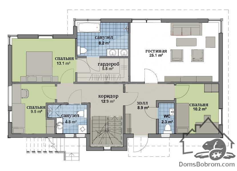 - Каркас:Каркас дома из сухой строганой доски камерной сушки: силовой каркас, хедеры, ригеля, обвязки каркаса, стропильная система, перекрытия, перегородки.