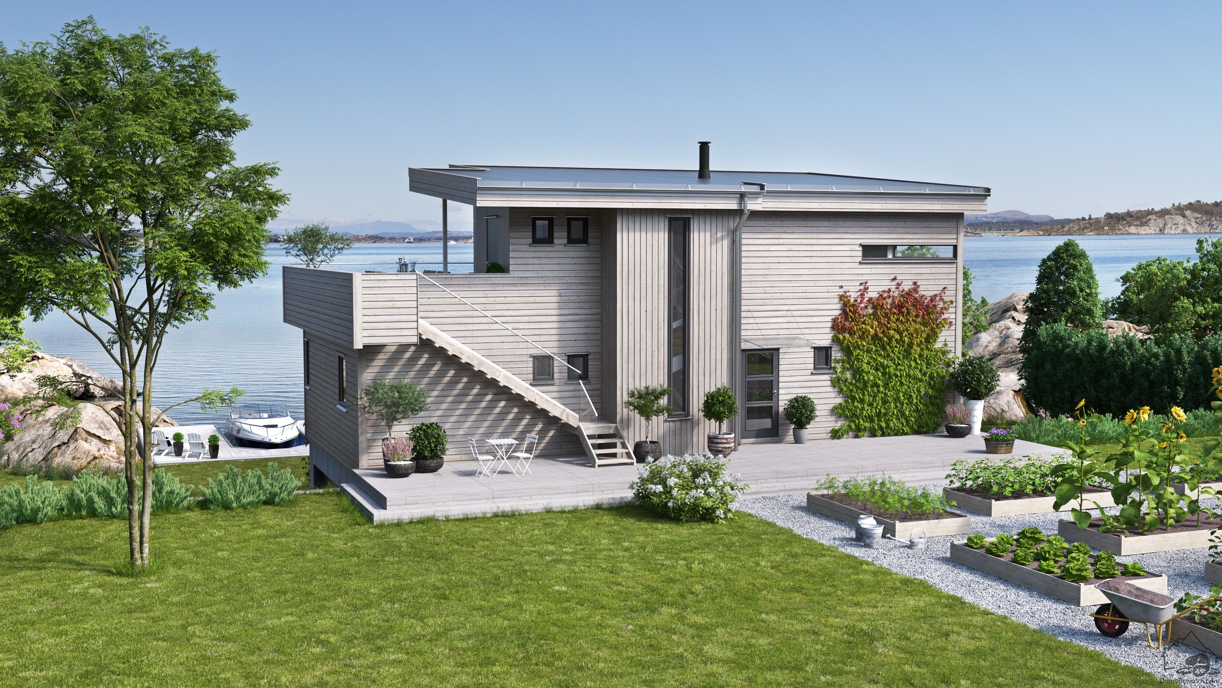 Дом Eos имеет возможность организовать вход на 1 или 2 этаже практически с любой стороны здания. Это делает проект дома привлекательным для нескольких типов наклонных участков.