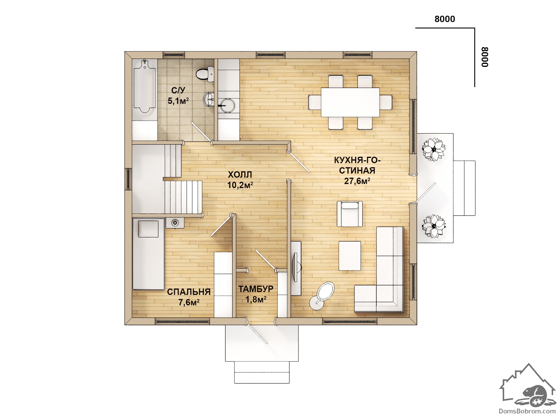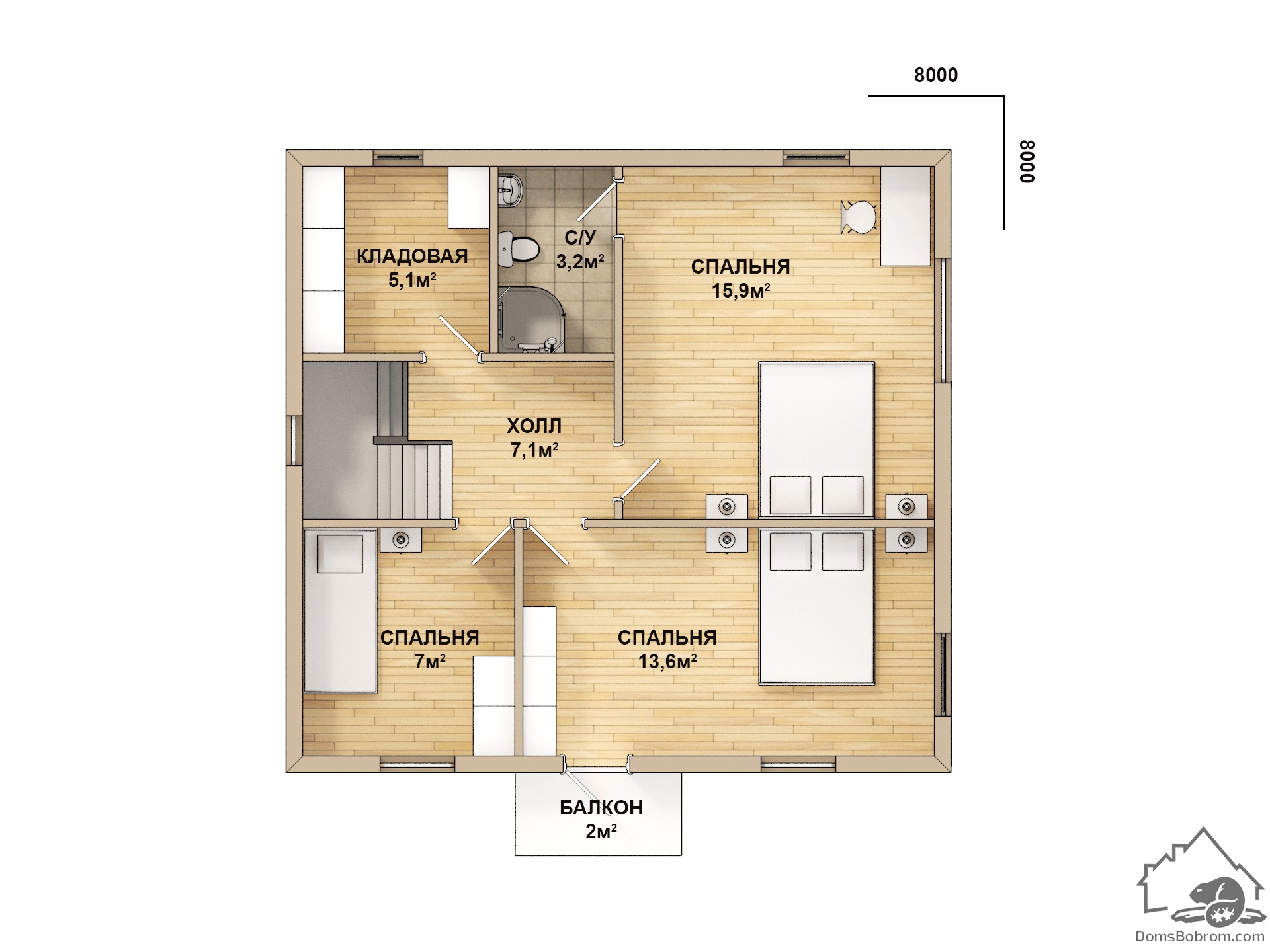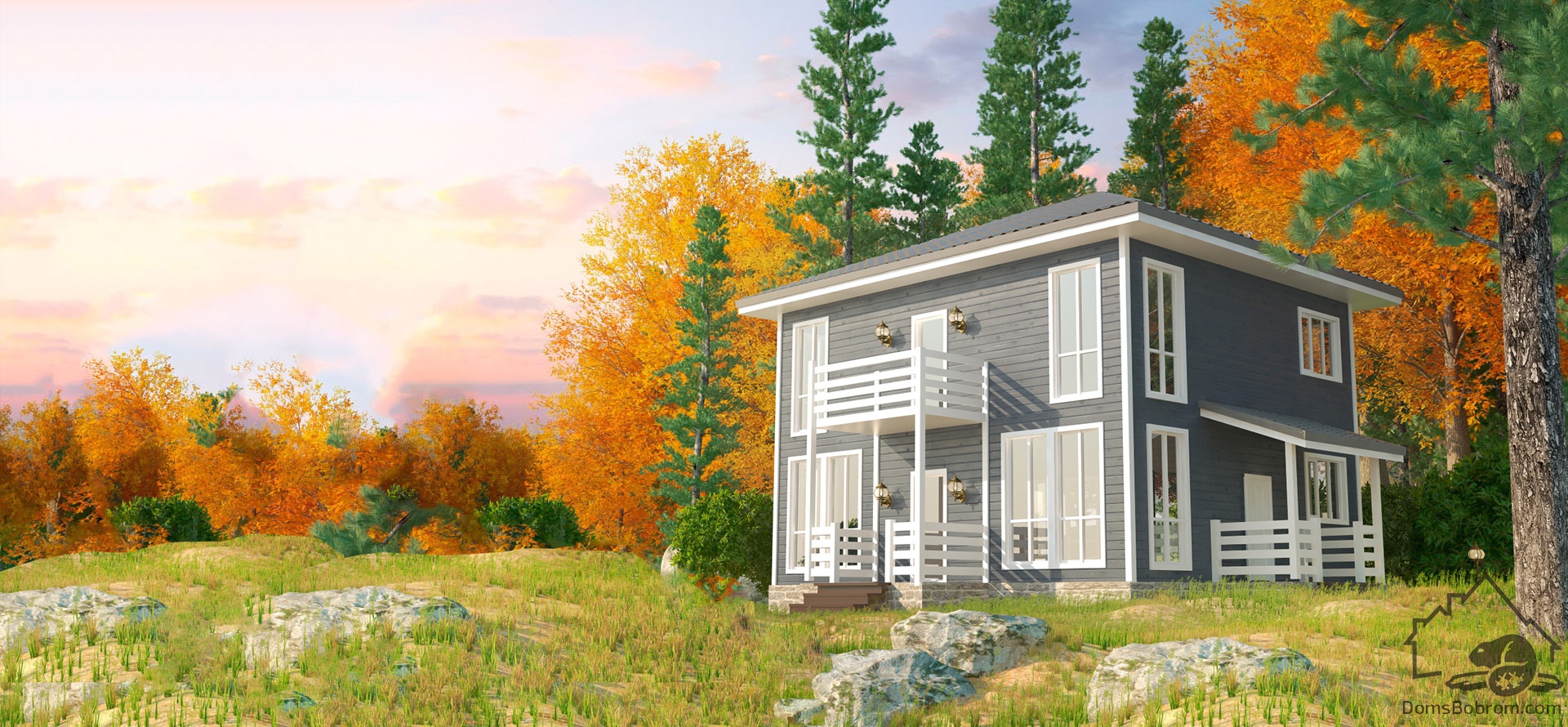 Дом Евро - это впечатляющий двухэтажный компактный дом для семьи из 3-5 человек. В нем есть все необходимое: достаточное количество спален, общая гостиная-кухня столовая, 2 санузла и кладовая. С балкона можно полюбоваться видами и подышать свежим воздухом.