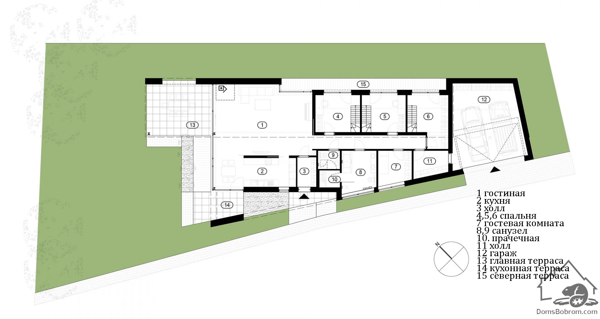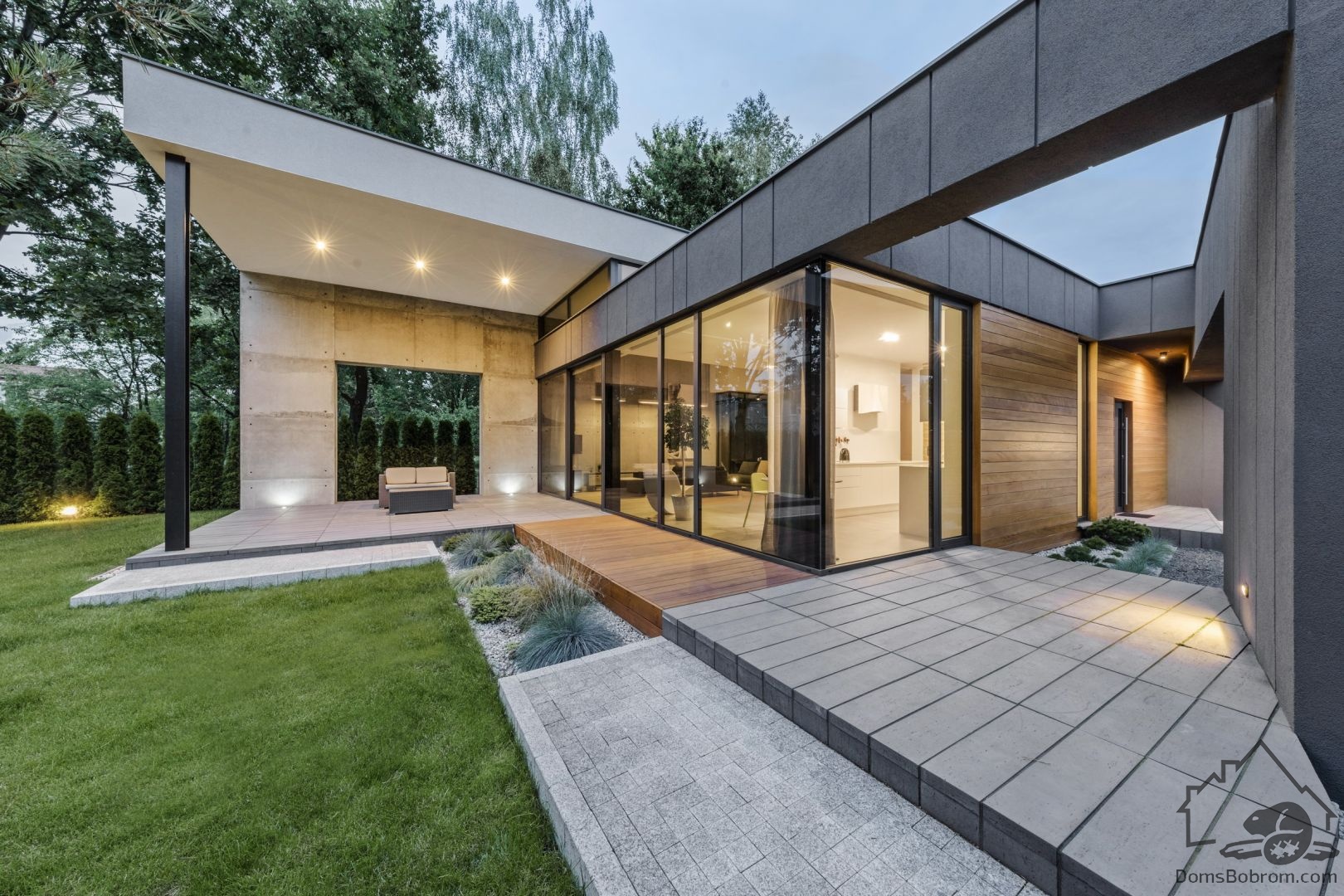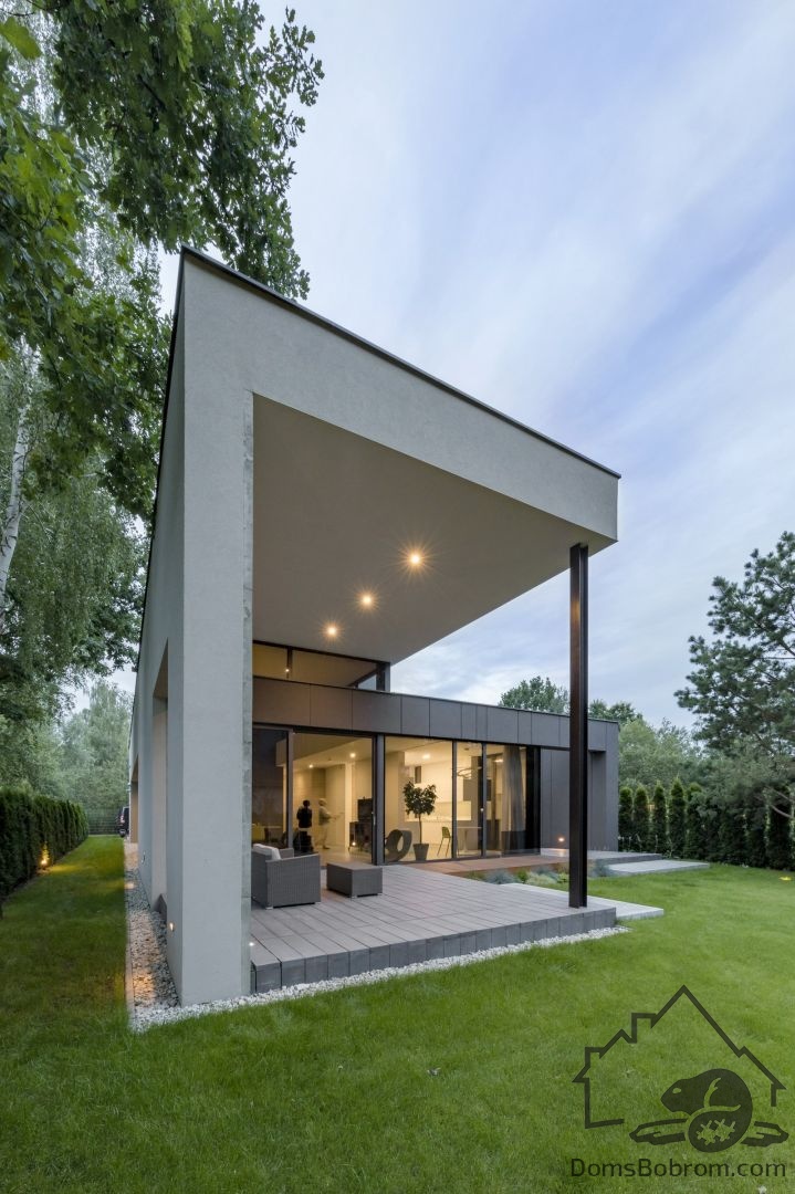 Дом FIL - это уникальный дом, который открыт и закрыт одновременно. Идеально подходит для участков вытянутых, узких, неправильной формы. Дом FIL - это дом на одну семью. Внимание на себя сразу обращает крыша, разделенная по длинной оси на две секции разной высоты, создающие впечатление двух пересекающихся блоков. Таким образом, дом разделен на закрытый южный блок и более высокую, светло-серую северную часть.
