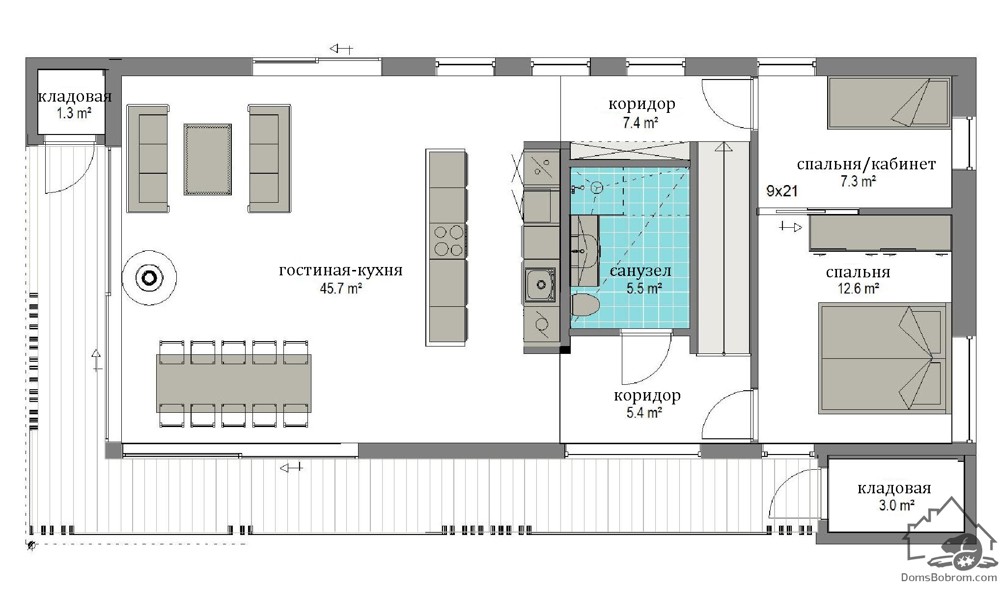 Размер дома 7,9 м х 14,4
