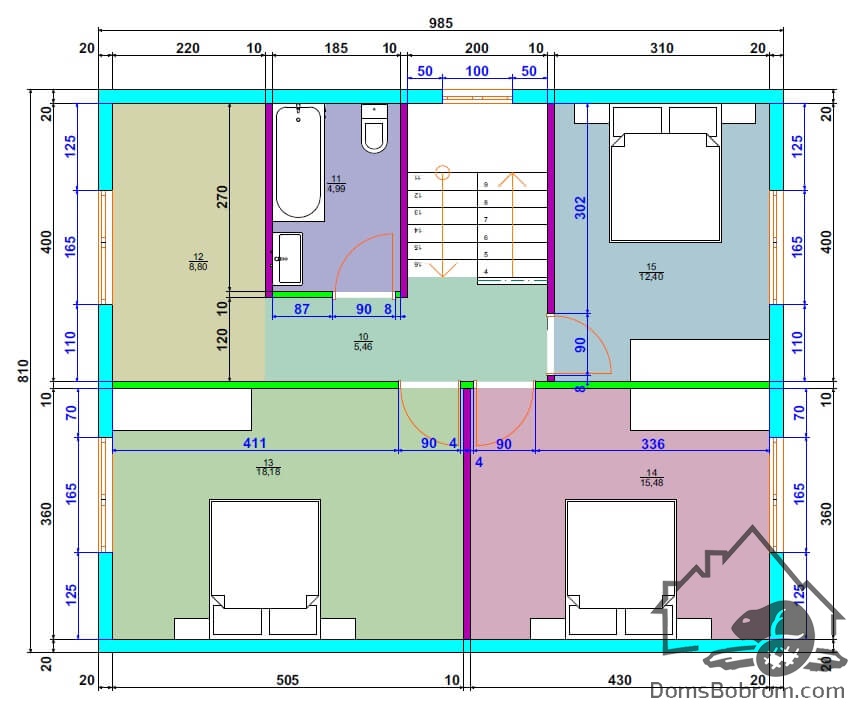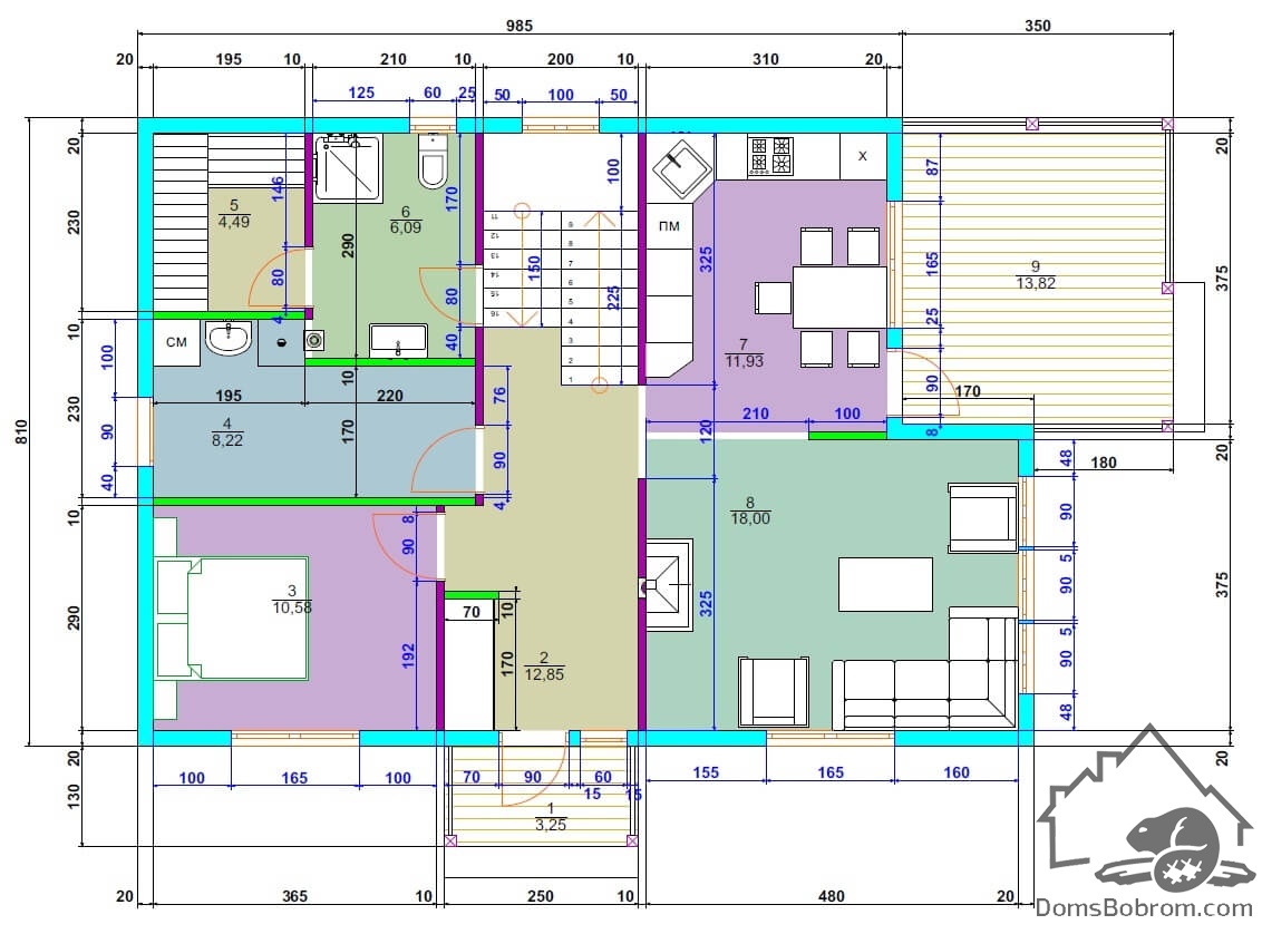 Размер дома 8,1 м х 9,8 м