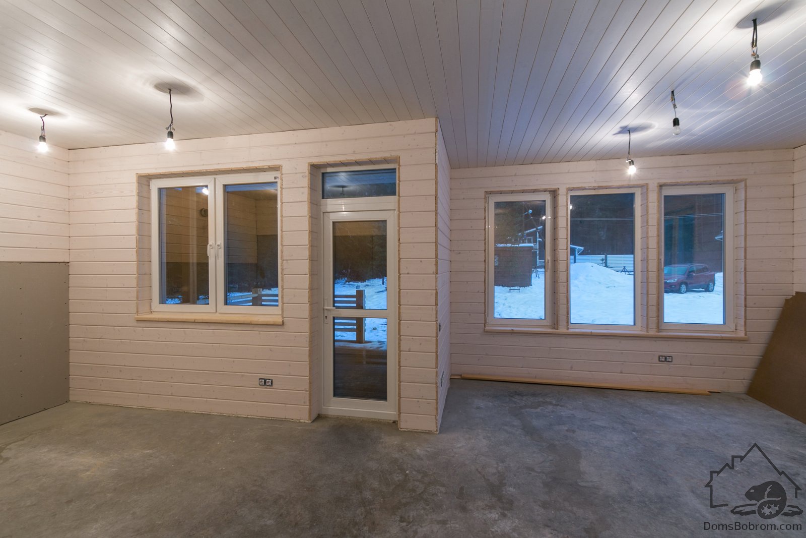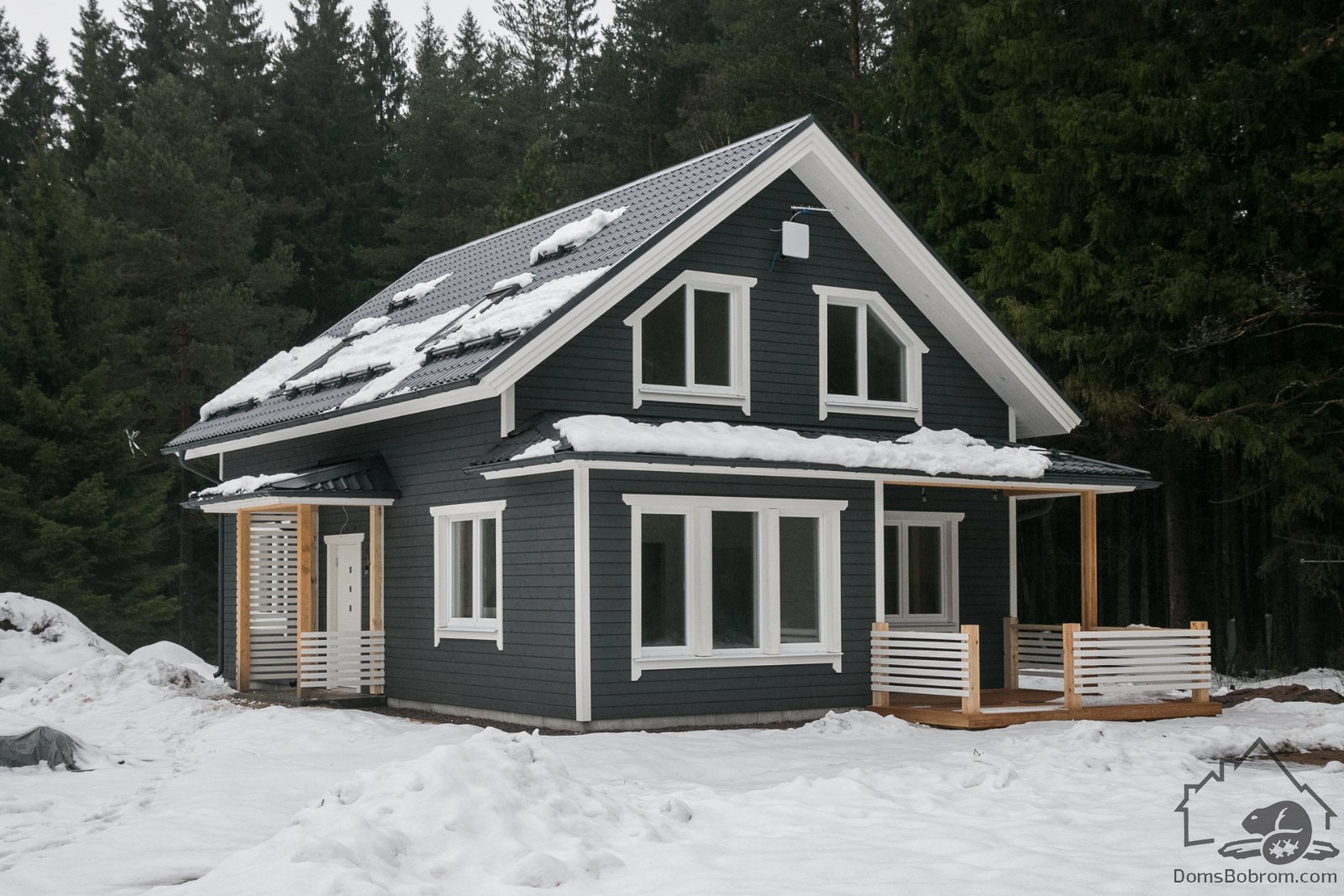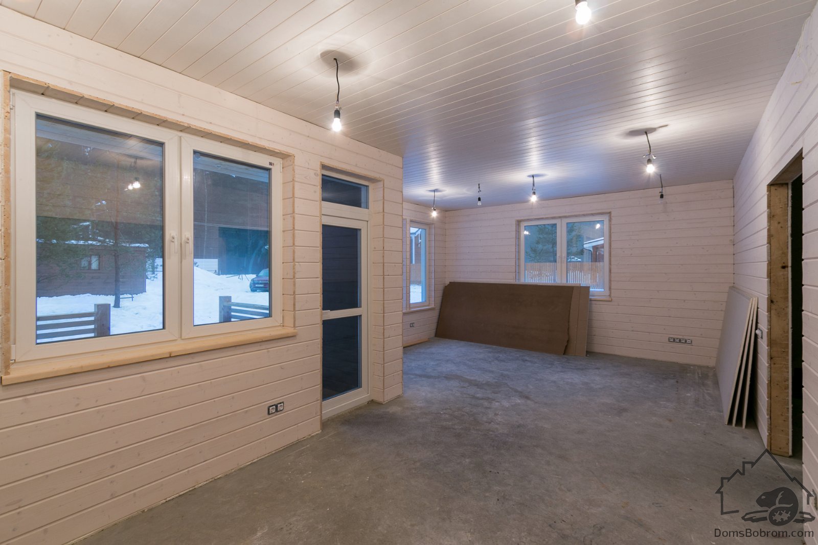 - Внешняя отделка:Доска / Цементно-стружечная плита (ЦСП), оконные отливы, наличники окон и дверей.