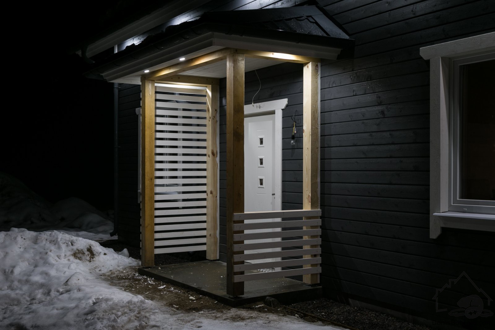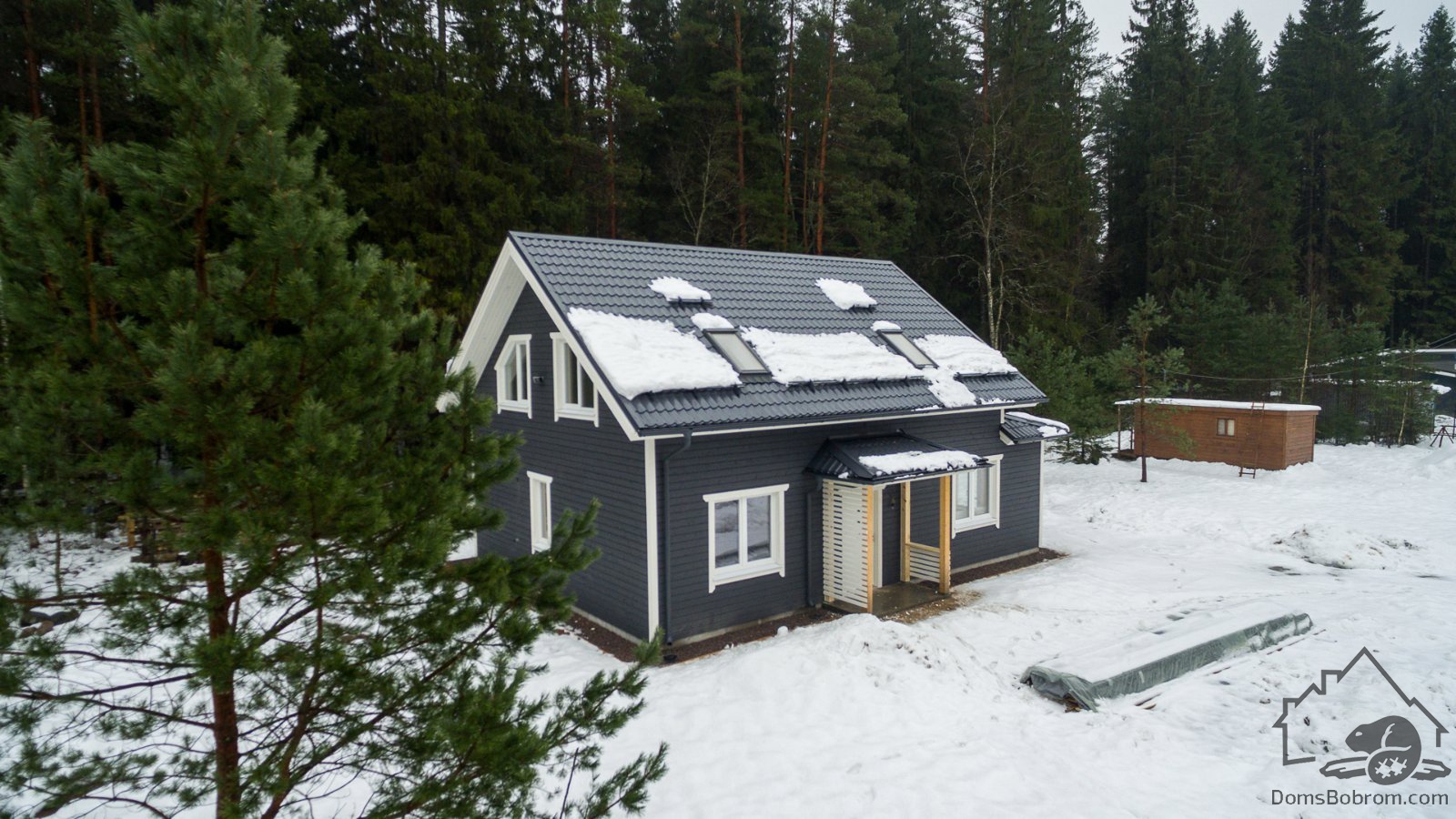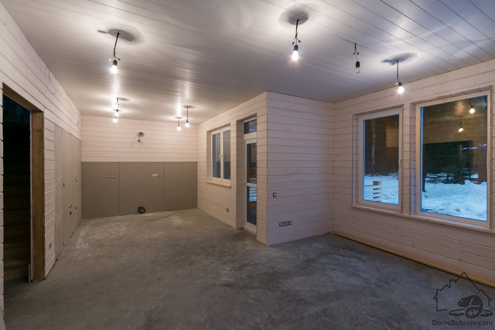 - Внешняя отделка:Доска / Цементно-стружечная плита (ЦСП), оконные отливы, наличники окон и дверей.