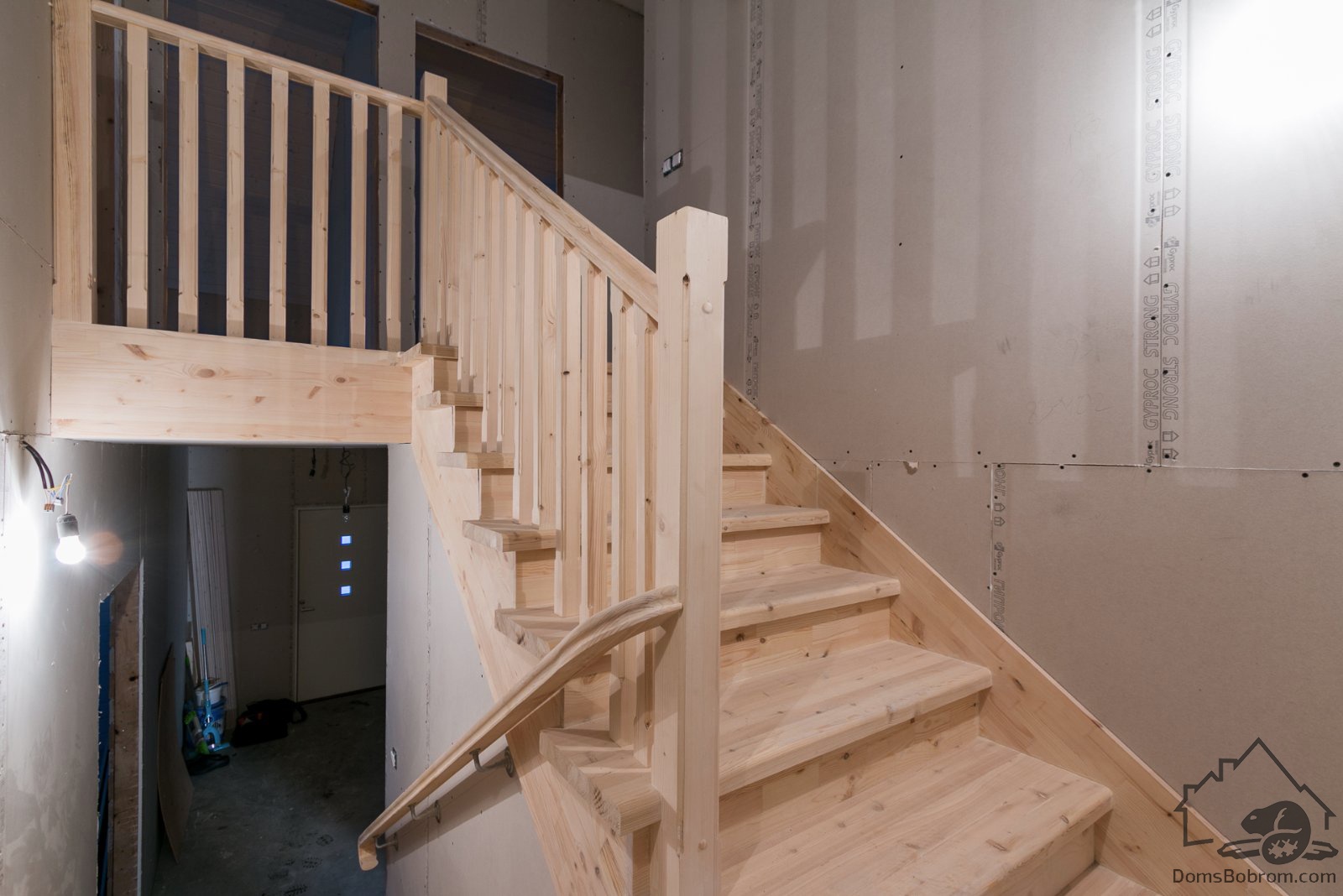 - Каркас:Каркас дома из сухой строганой доски камерной сушки: силовой каркас, хедеры, ригеля, обвязки каркаса, стропильная система, перекрытия, перегородки.