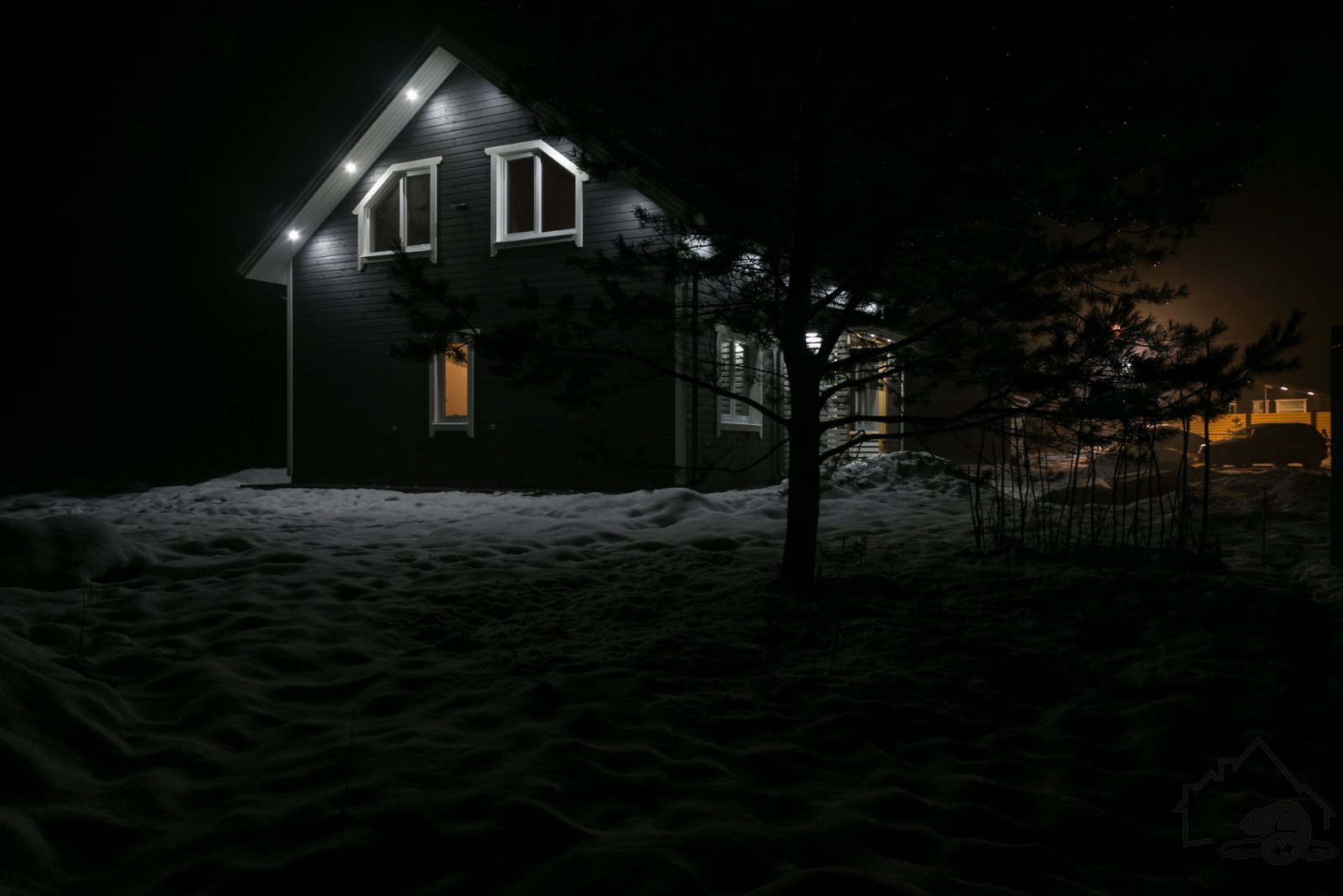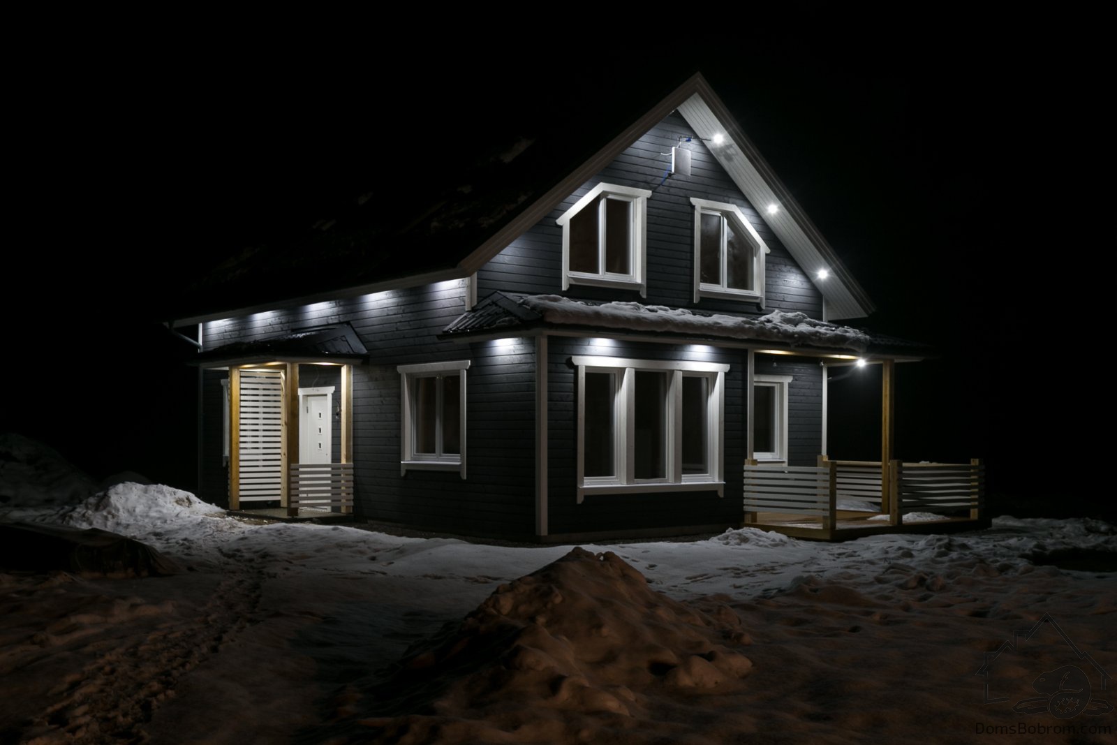 Грамотно смонтированная подсветка дома Фрязино делает его еще более эффектным и уютным.